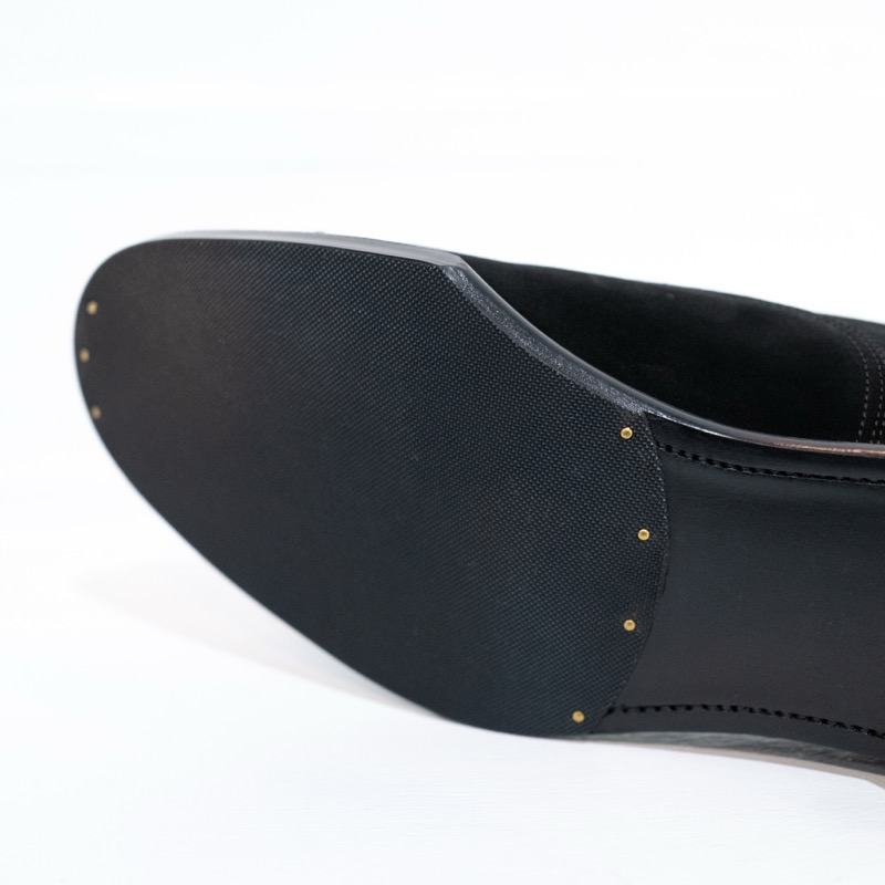 ソール面には現代の道路事情に合わせてハーフラバー張りとなっており、スリップしにくい仕様にするなど安全性と履き心地にも考慮しました。