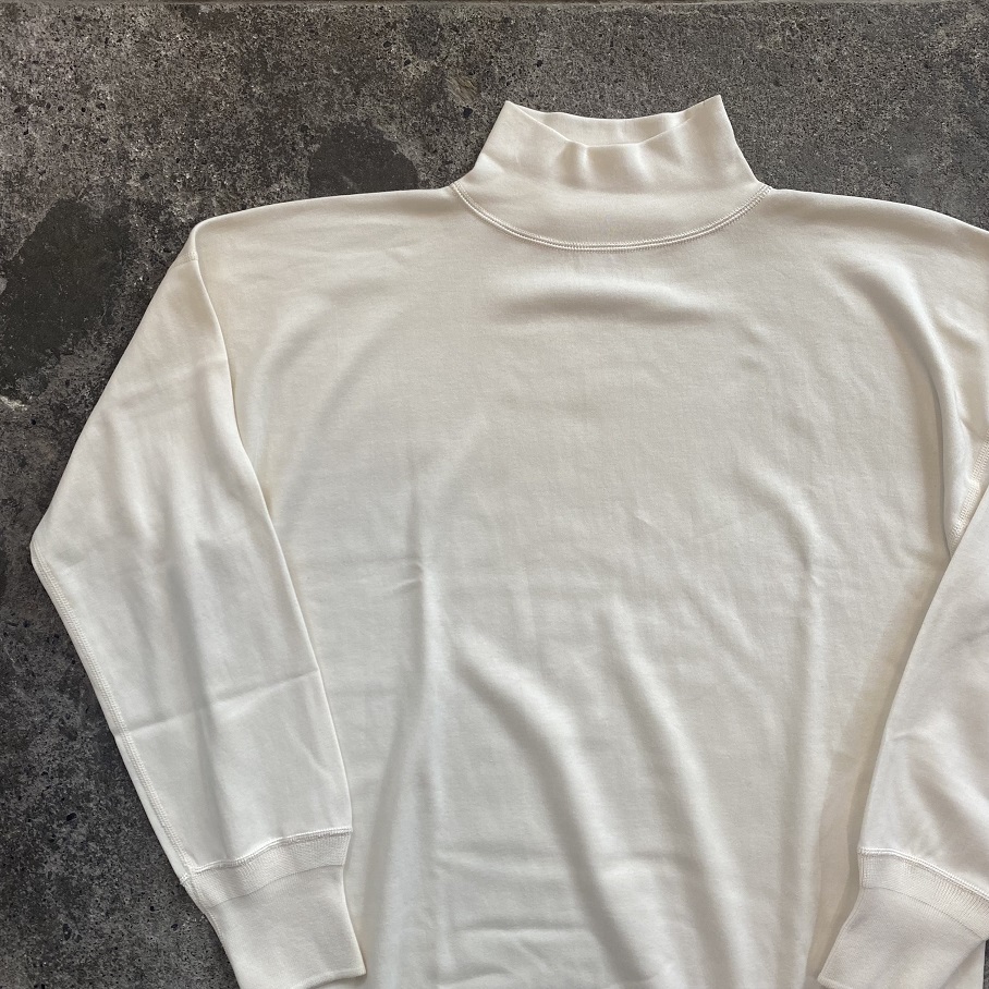 本日はOLDE HOMESTEADERのアイテムの中でもオンシーズンには品薄となってしまう”モックネック”のIVORYがサイズを揃えてご用意できましたので早速ですがご紹介させていただきます。
