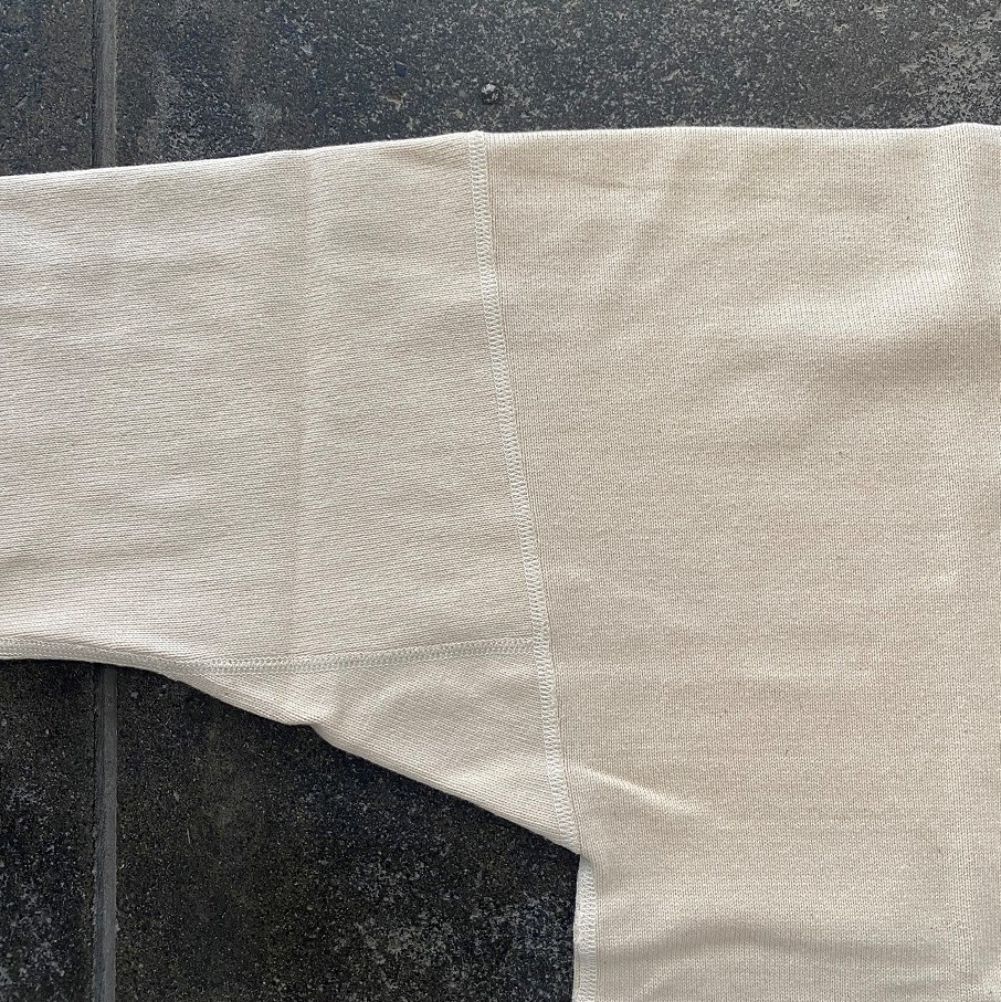 編地には”ニットソー”と言われるような古い時代のアンダーウェアの編地を参考に作られております。
