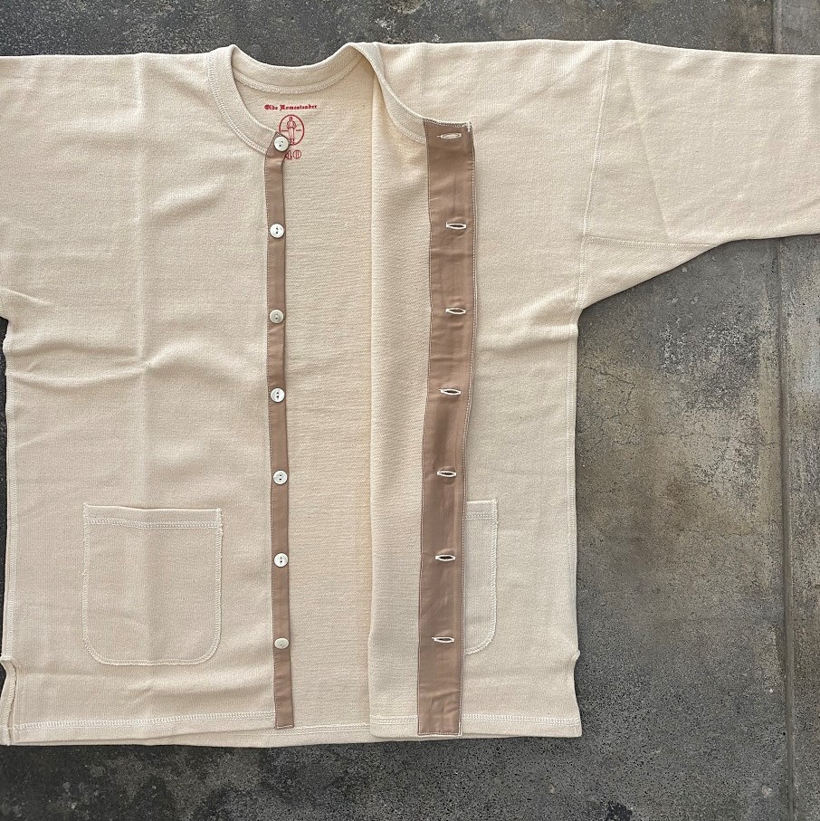 スタイルとしてはオープンフロントの物で欧州への輸出用と思われる70年以上前の”Made in Japan”の肌着を参考にOLDE HOMESTEADERの解釈で素材から質感までを再構築した逸品です。