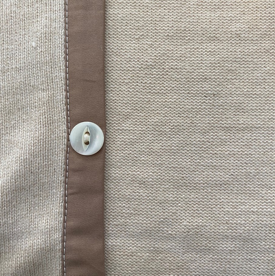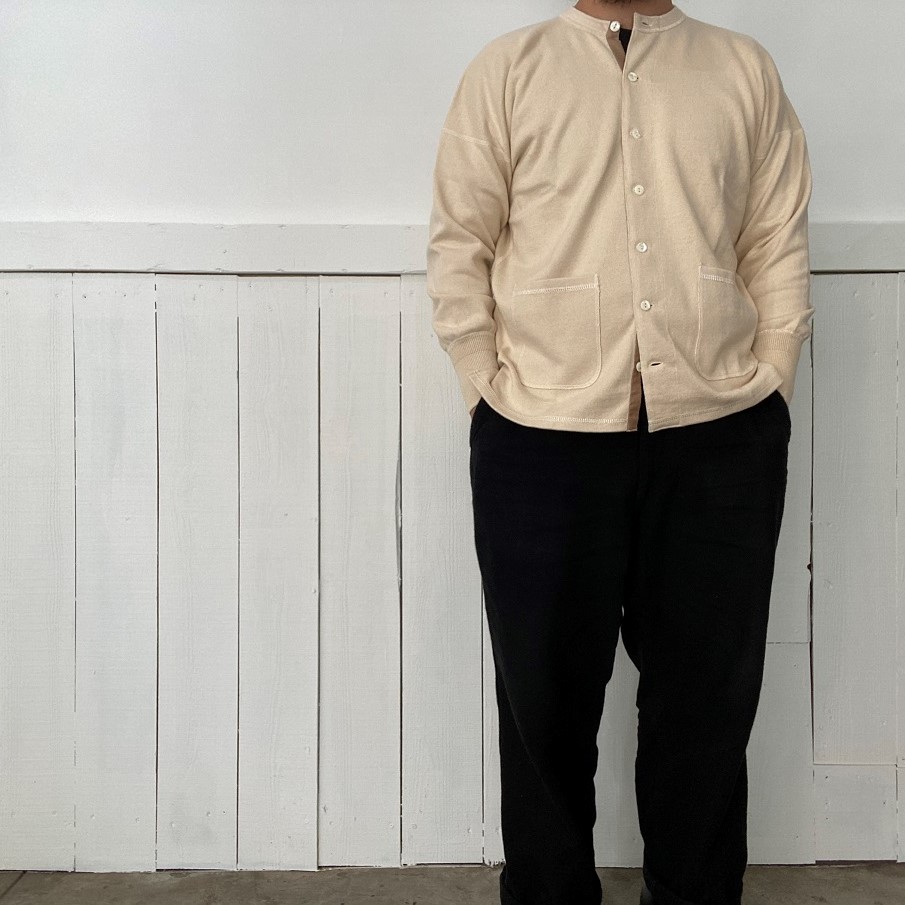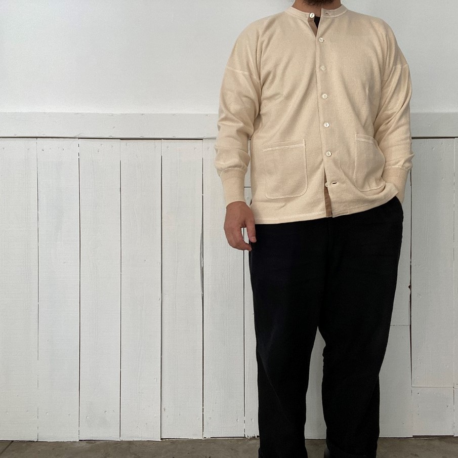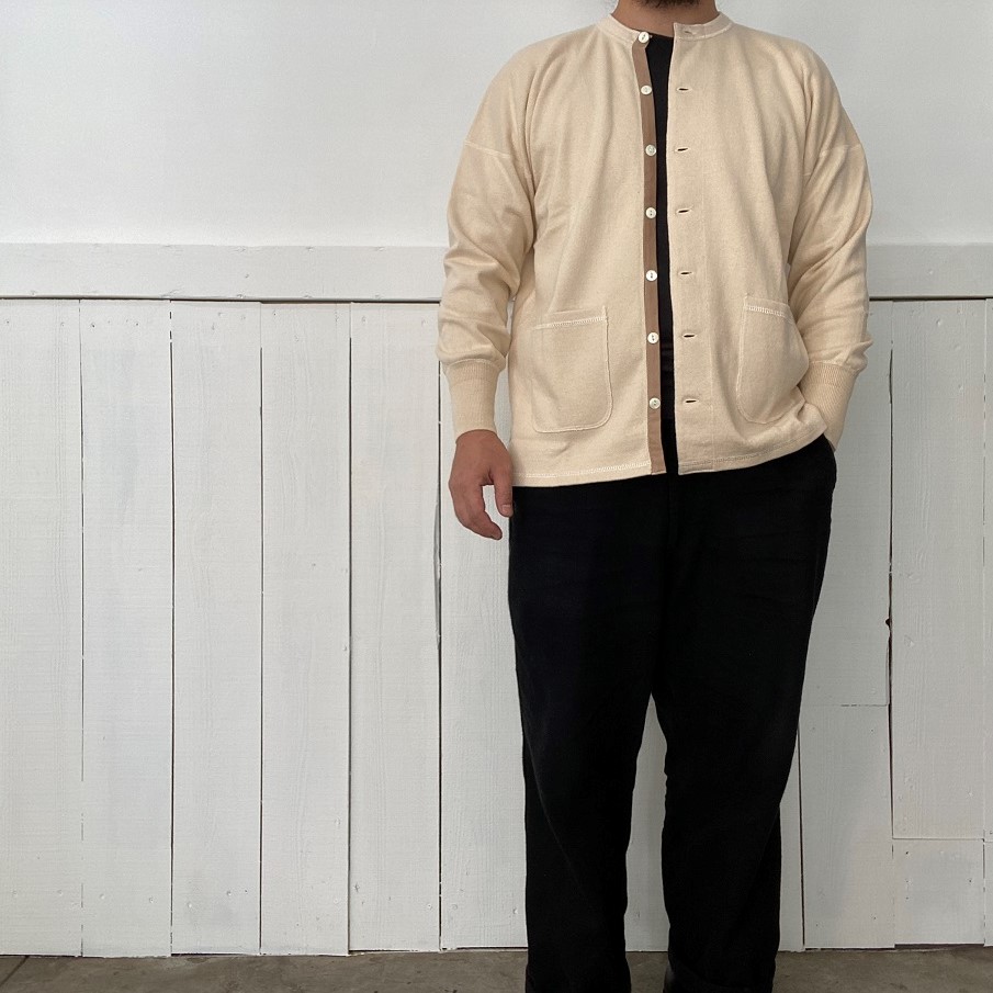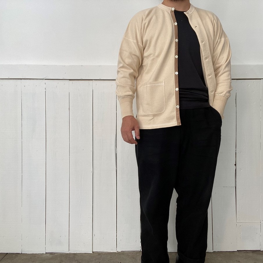 直接肌の触れる内側は裏起毛の物でありませんので”コットンニットカーディガン”という言い方が一番しっくりくる生地感となります。