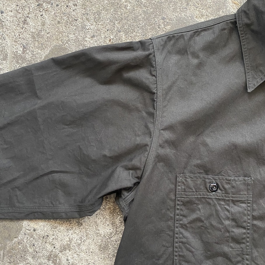 ”BLACK”と表記しておりますが厳密には墨黒で着込んだ時に程よくエイジングしていく生地感は他ではなかなか味わうことの出来ない質感かと思います。