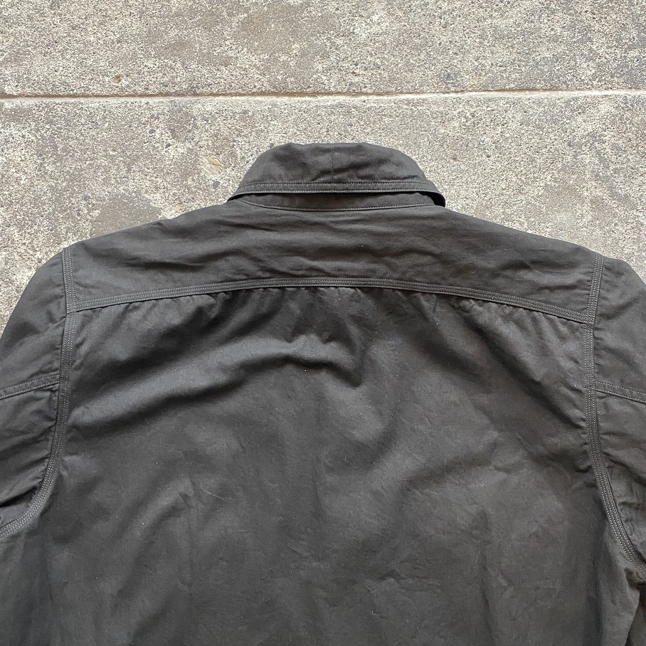 シャンブレーなどの平織り生地でブラックを探すことは容易ですが、オリジナルビンテージ同様に綾織生地でシャツに適した薄手のブラックの生地となると簡単に生地は見つからず、数年がかりで今回使用した生地を探し出しました。
