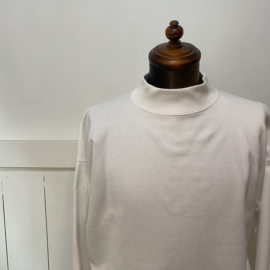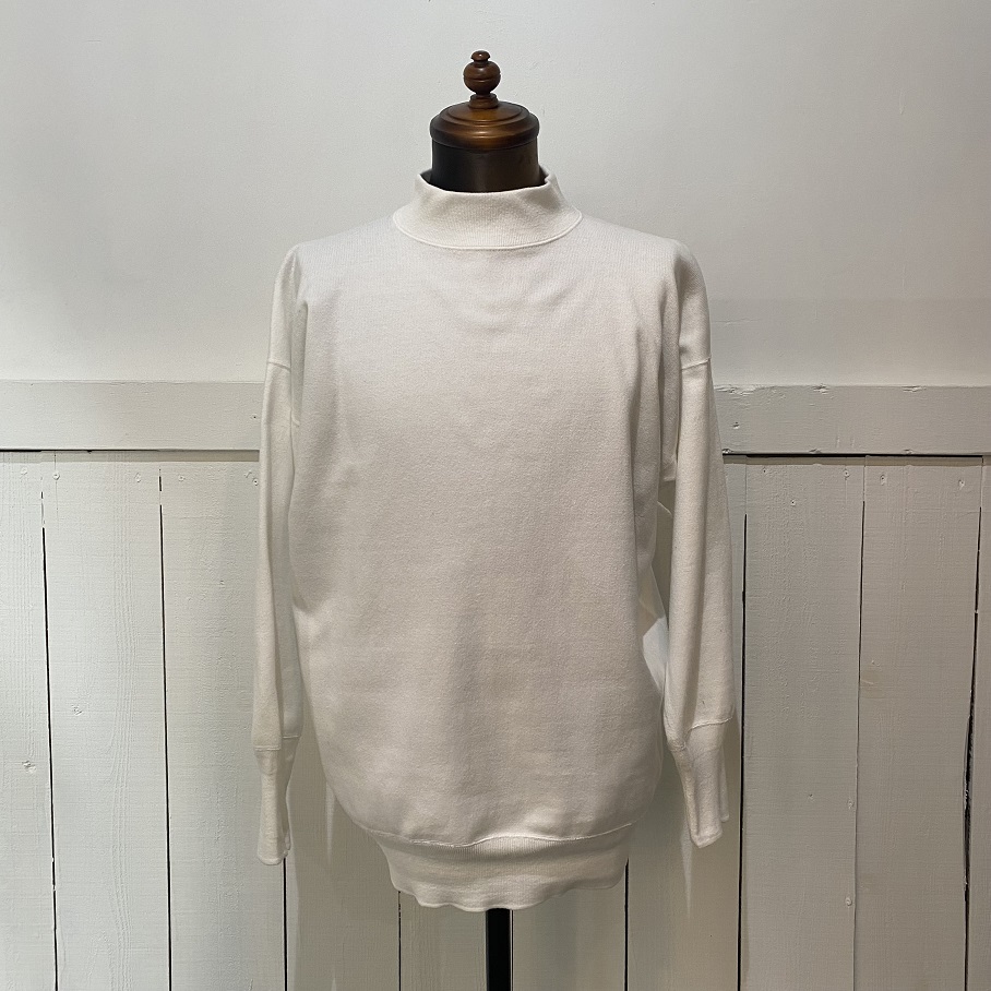 OLDE HOMESTEADERの”RUSTIC JERSEY”シリーズとしてニューリリースとなりました”BOTTLE NECK SWEATER”のOFF WHITEをご紹介させていただきます。