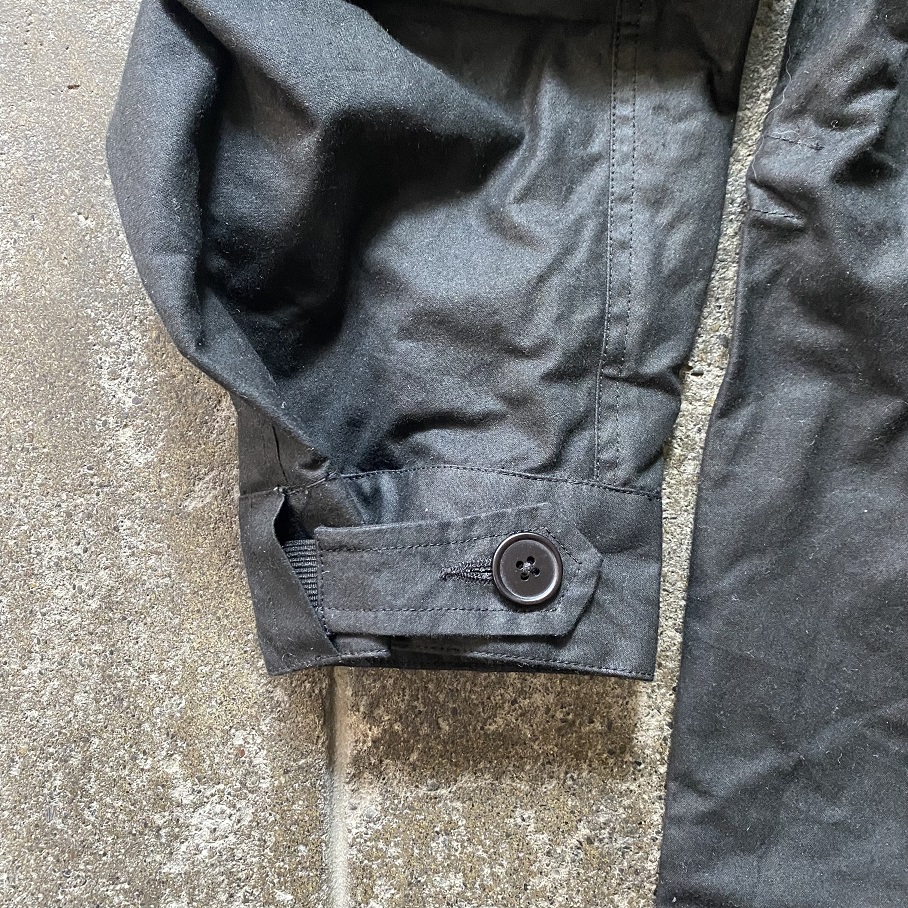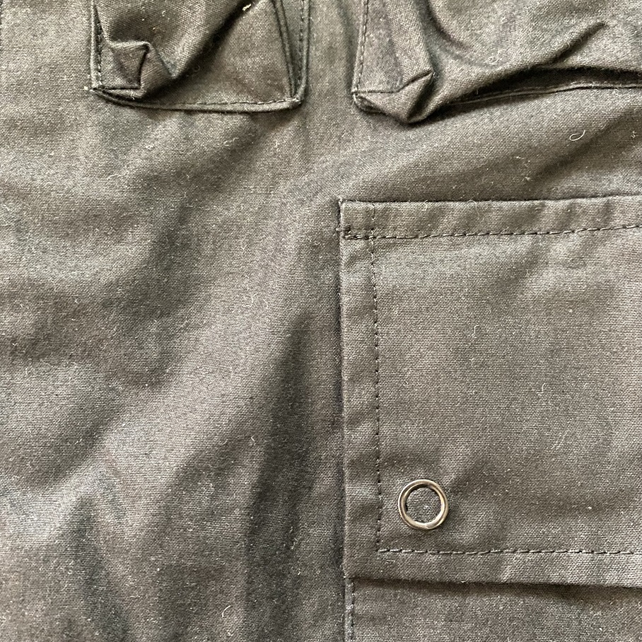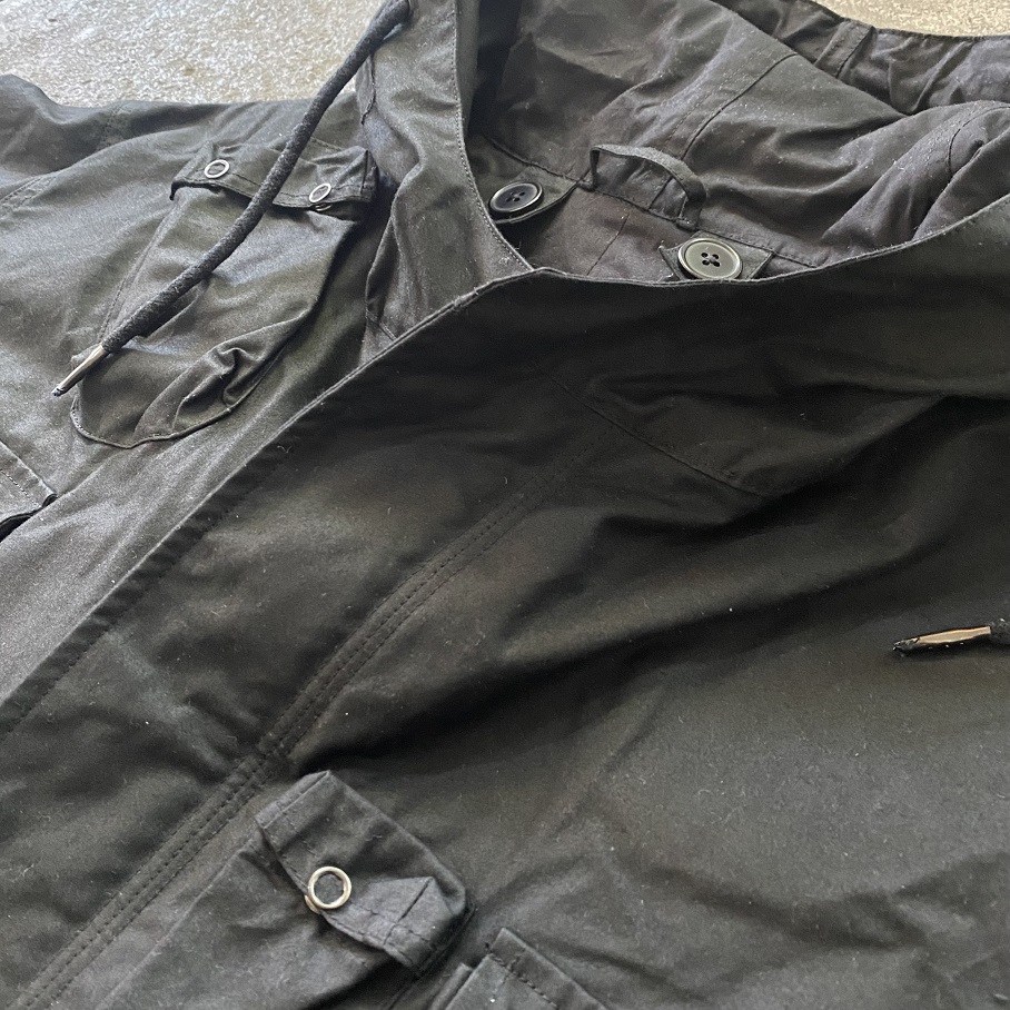 ワックスはドライワックスを使用しておりますので古のオイルドコットンジャケットのような匂いも無く、着初めは少しオイル感を感じるのみの良質なオイルが使用されております。