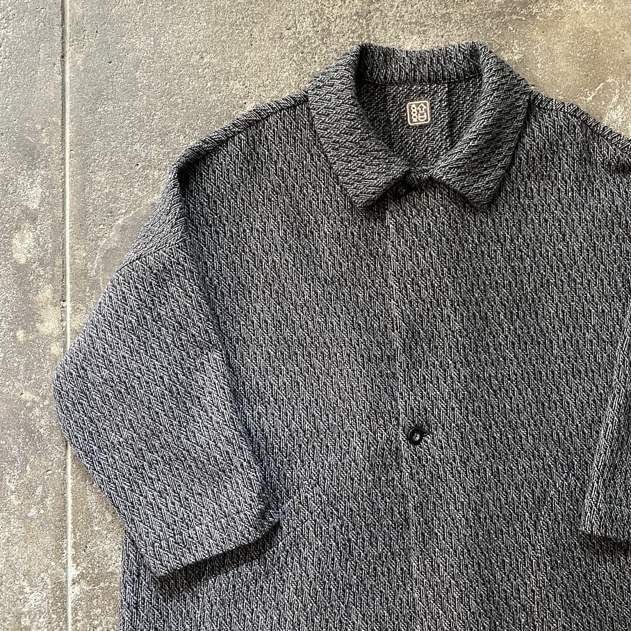 前立て部分にはボタンは2つのみ。コートとしては最低限なディティールの構成ですがオリジナルで織りあげた生地やコートの形状を最も引き立たせるミニマムなディティールとなります。