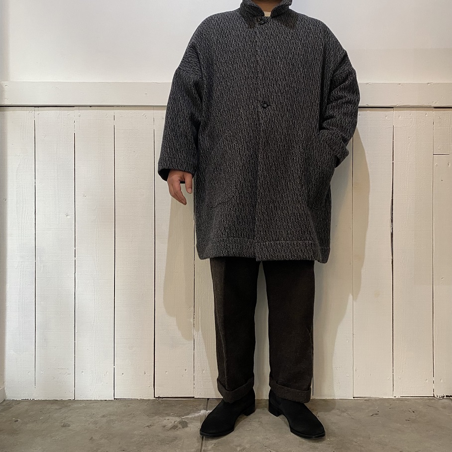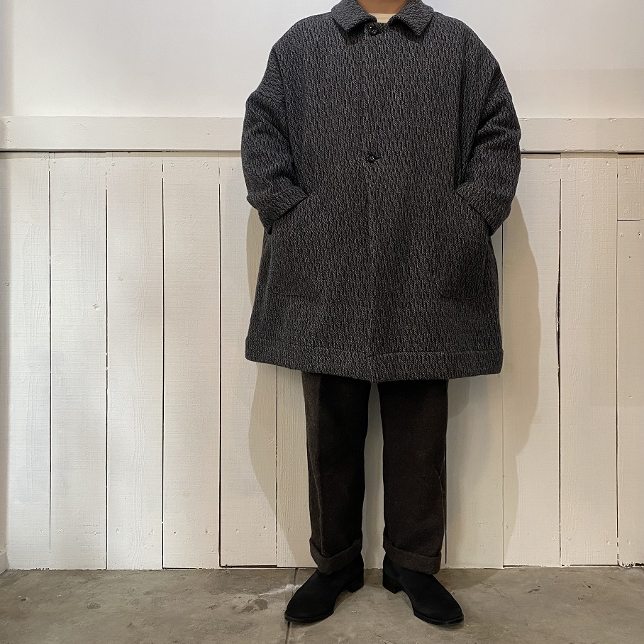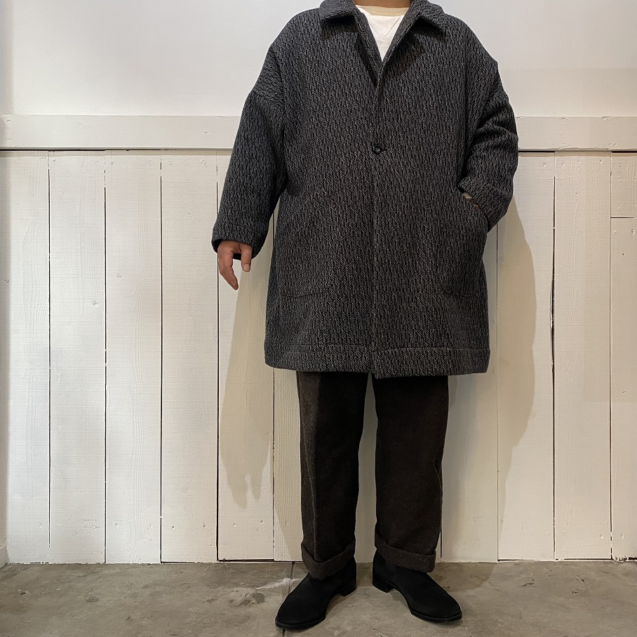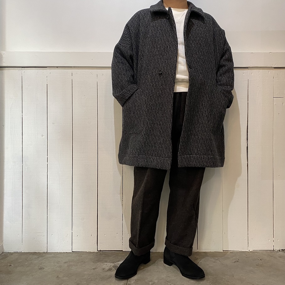 軽さを感じるウール素材で落ち着いた印象の生地感ですので性別、年齢を問わずにおすすめさせていただきたい一着となります。