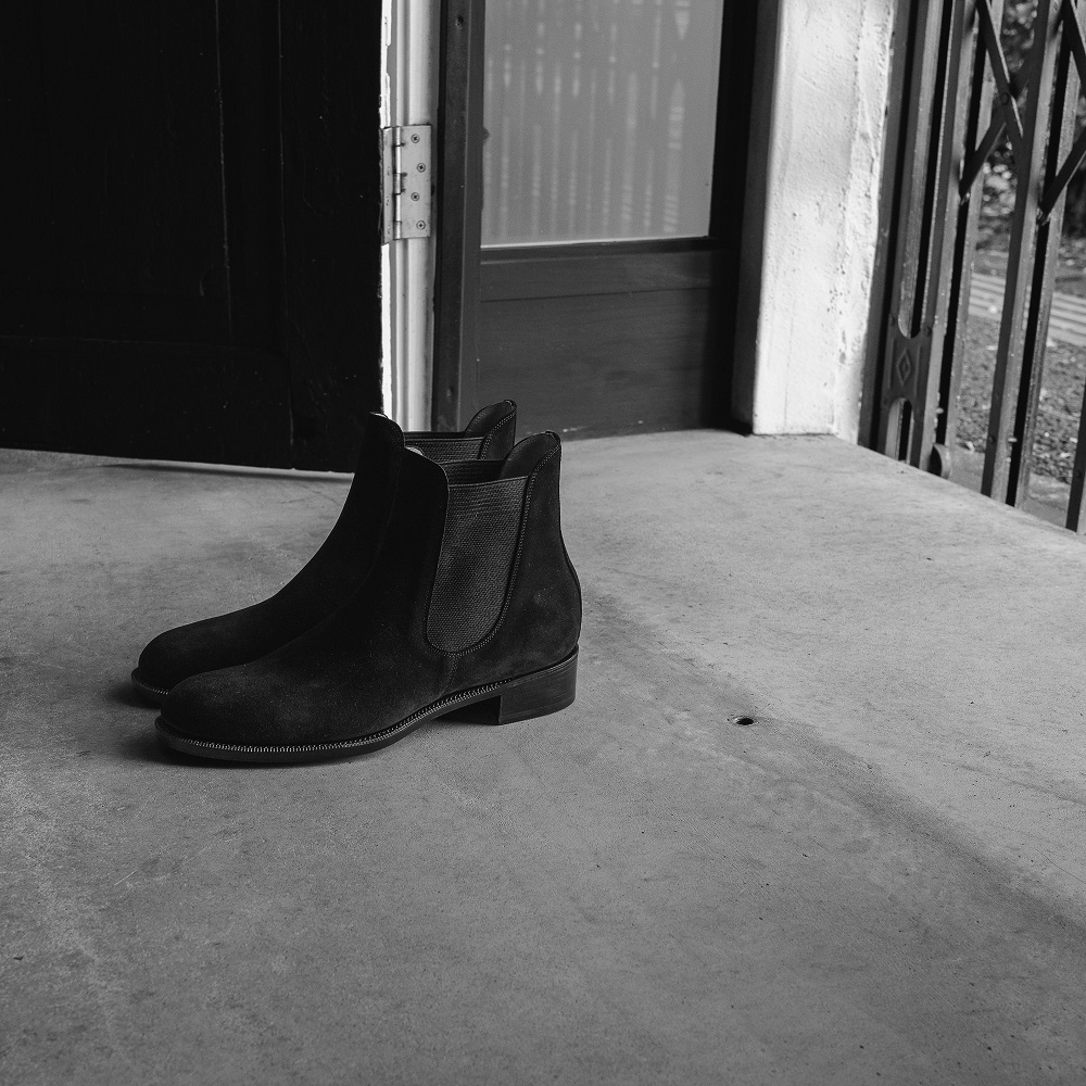 歴史のあるチェルシーブーツを参考に個人的にもとても注目しておりましたスエードレザーバージョンにてリリースさせていただきます。