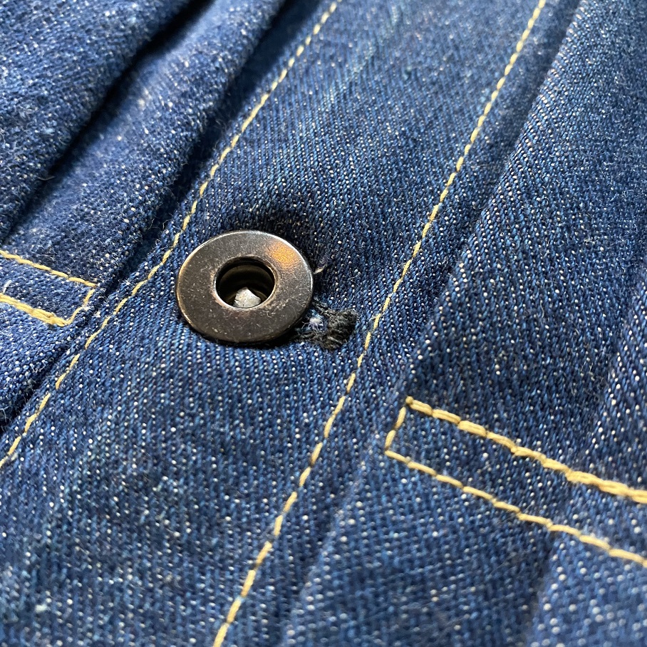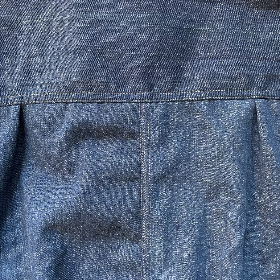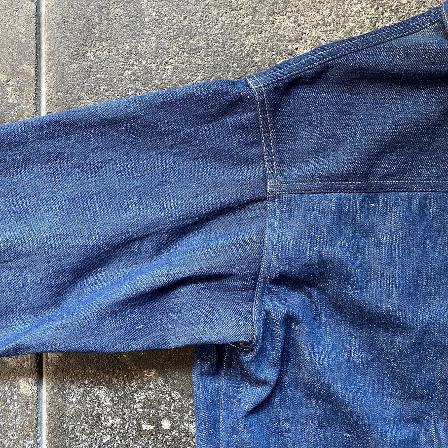 又、その一着のみでは要尺が足りないため、こちらも同年代となる1910年代の第一次大戦時にランドリーバッグとして使われていたデニム生地の物を解体しこの一着に採用されております。