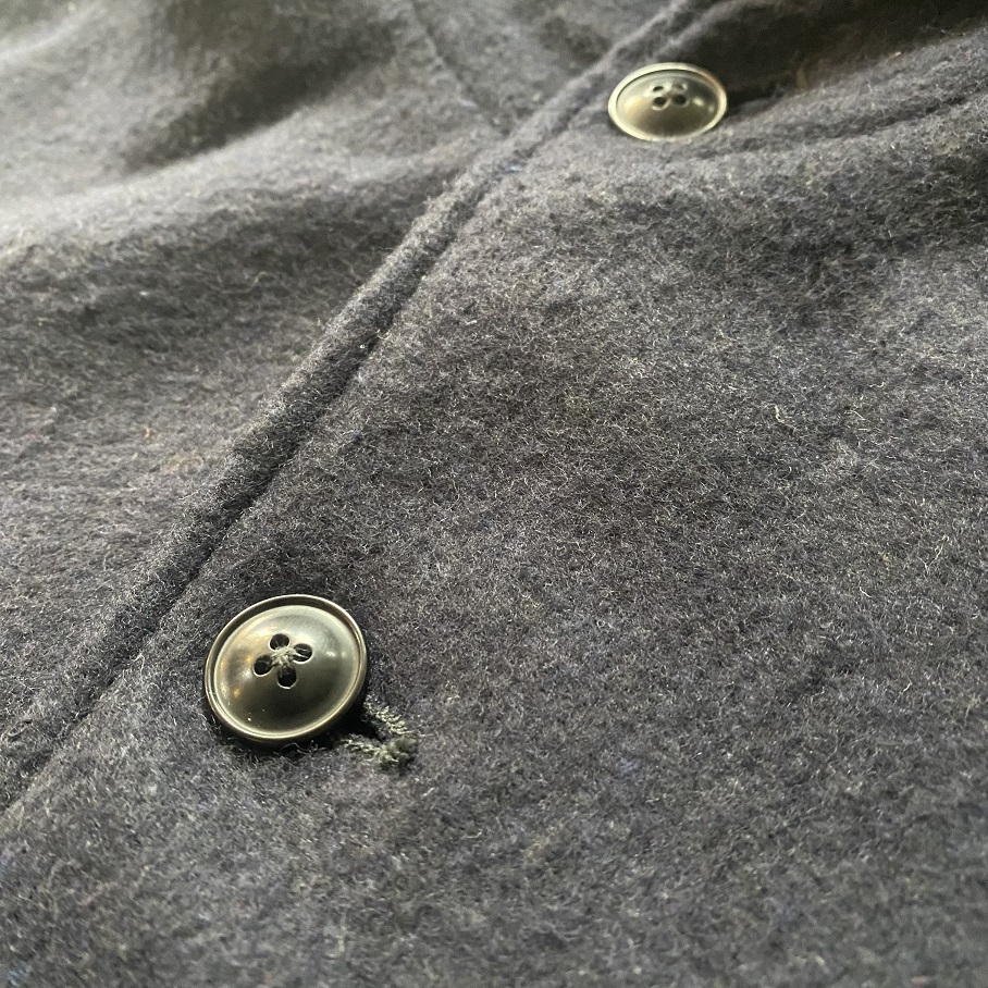 ※裏地のウール生地にはNEW OLD STOCK(デッドストック)の生地が使用されております。時間の経年による汚れとラグ生地自体の色ぬけが強いので洗濯の際には必ず単品洗いをお願いいたします。