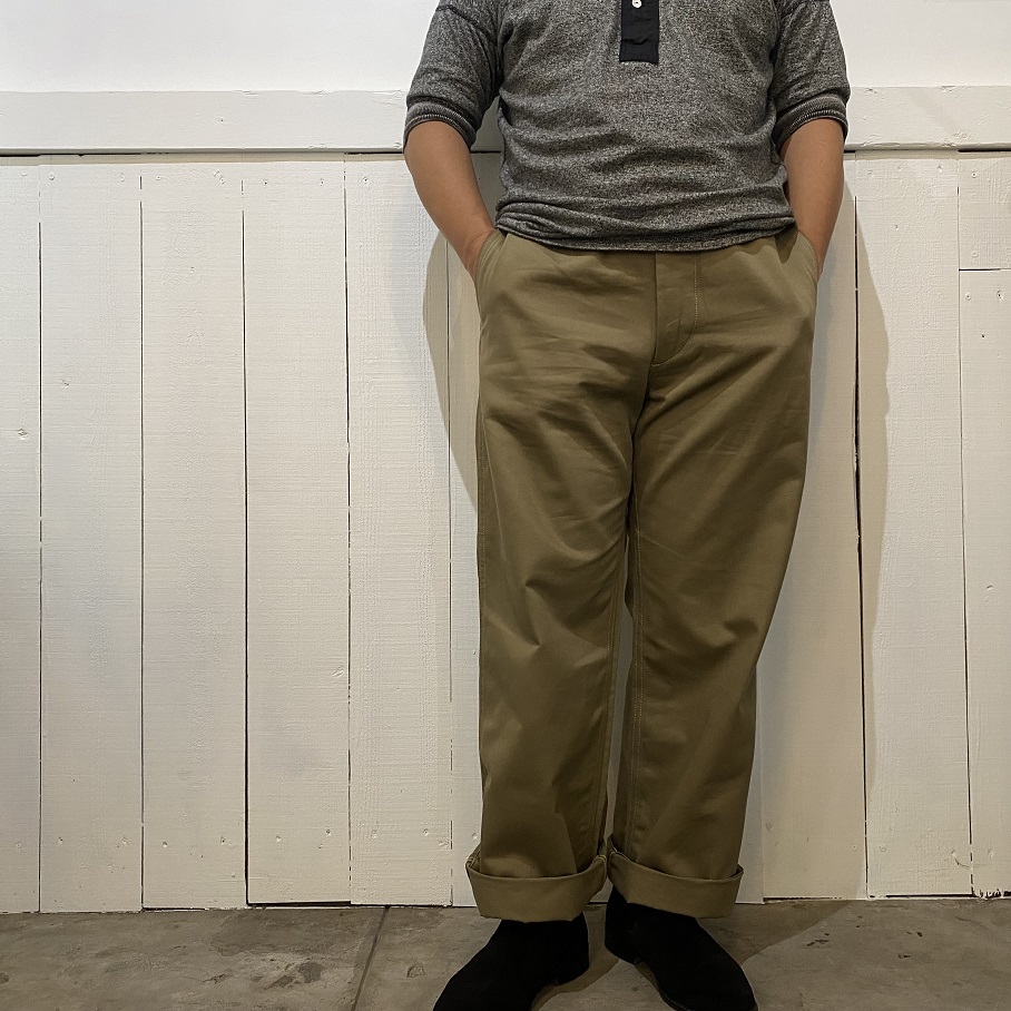 アメリカ陸軍(US・ARMY)のチノパンと比較してもブラウンの色目が強い独特なカラーのチノクロスを使用しております。