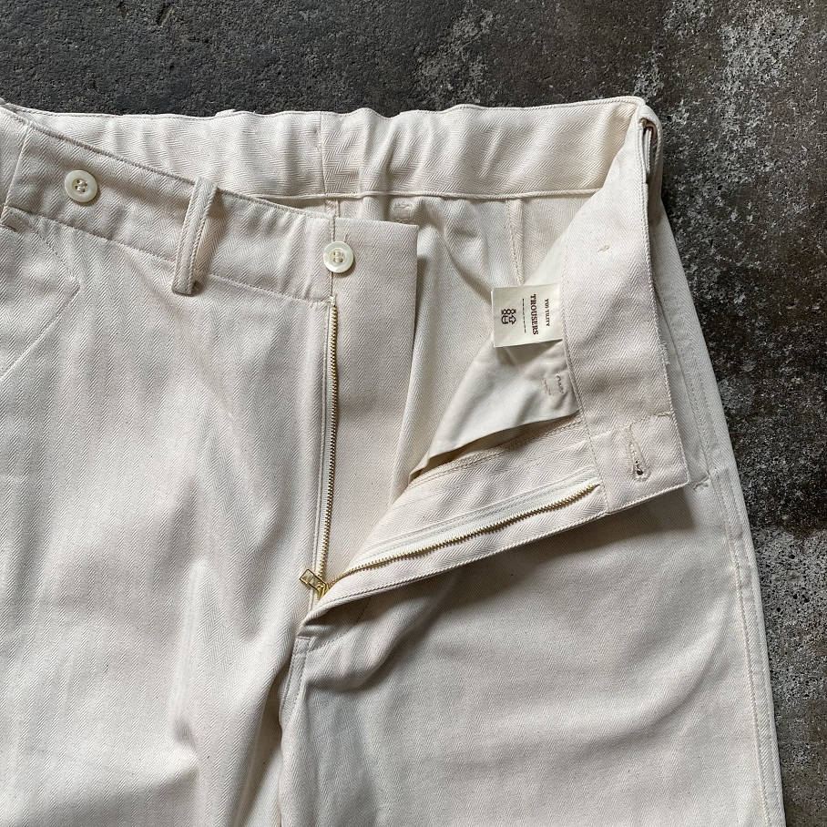 本日はYUIでは定番としてお取り扱いさせていただいております”YUI-TILITY TROUSERS”に新色となるHerringbone Ivory(ヘリンボーン・アイボリー)がニューラインナップされましたのでご紹介させていただきます。