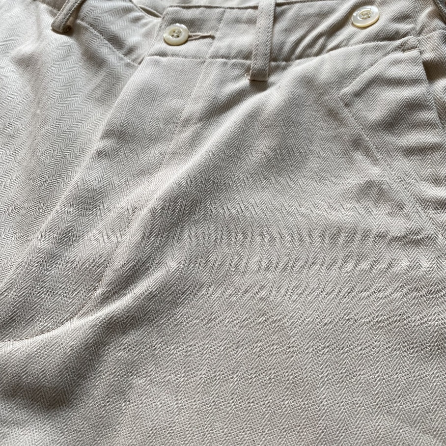 程よい厚みのあるヘリンボーン生地で洗濯を繰り返すことでしっかりとした杉綾模様が表れてくる質感は春から夏にかけては特に重宝してくれそうな生地感です。