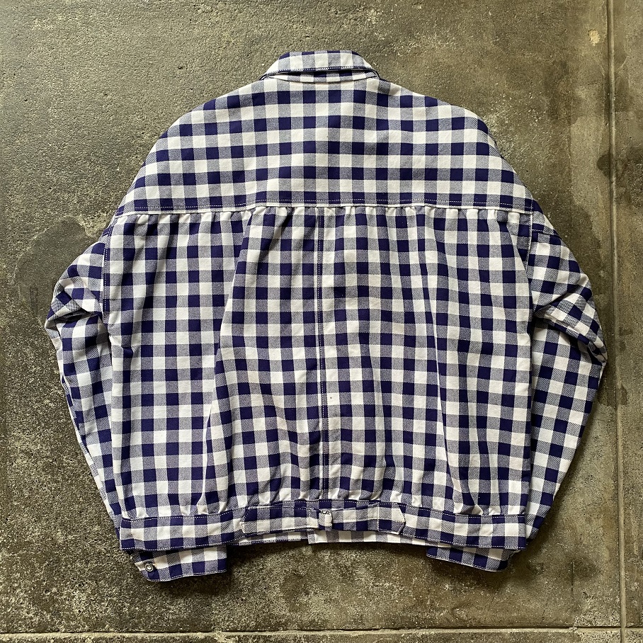ブルー×ホワイトの所謂”ギンガムチェック”のようなチェックとなりますが、シャツなどに使用される大きさのチェックではなく、ジャケットに最適な程よい大きさのチェックの大きさの物となります。