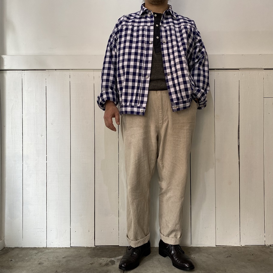 昨日、一昨日とご紹介させていただきました当店のオリジナルジャケットとして製作させていただきました”1900’s Early Style Jacket” BLUE CHECKジャケットですが早速お問い合わせなどもいただいており、嬉しい限りです。