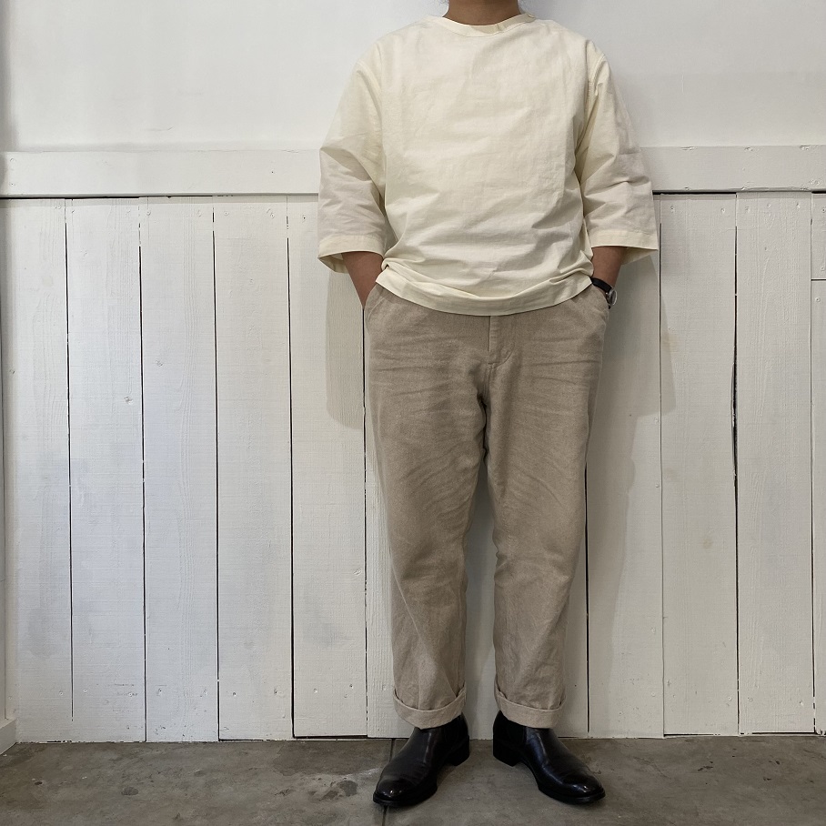 裾のラインは真っすぐな仕上げですので”癖の無いカットソー”といった印象です。