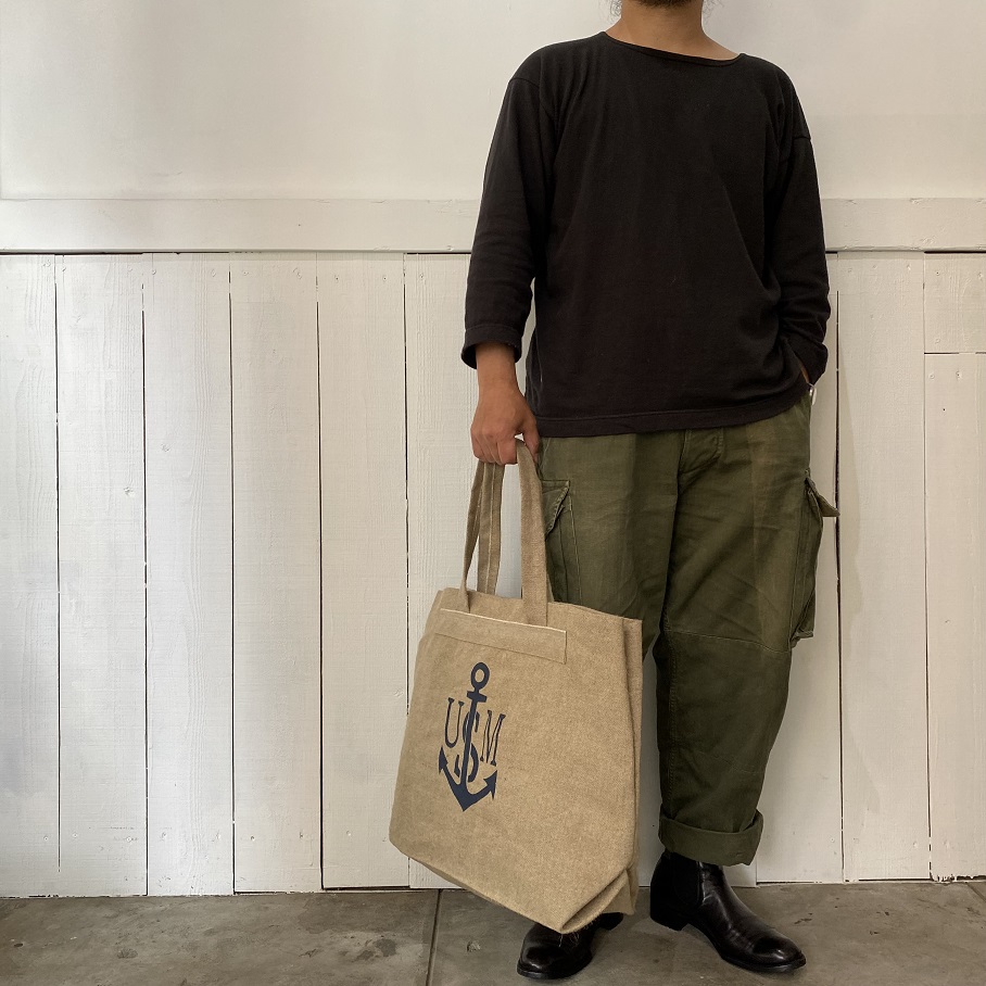 そんなoddmentより1960年代にイタリア軍で採用されていた麻生地を使用した未使用(N.O.S./DEAD STOCK)の”ハンモック”を材料にリメイクされ、トートバッグに生まれ変わったHEMP TOTEをご紹介させていただきます。