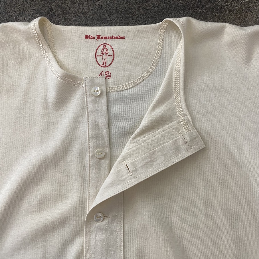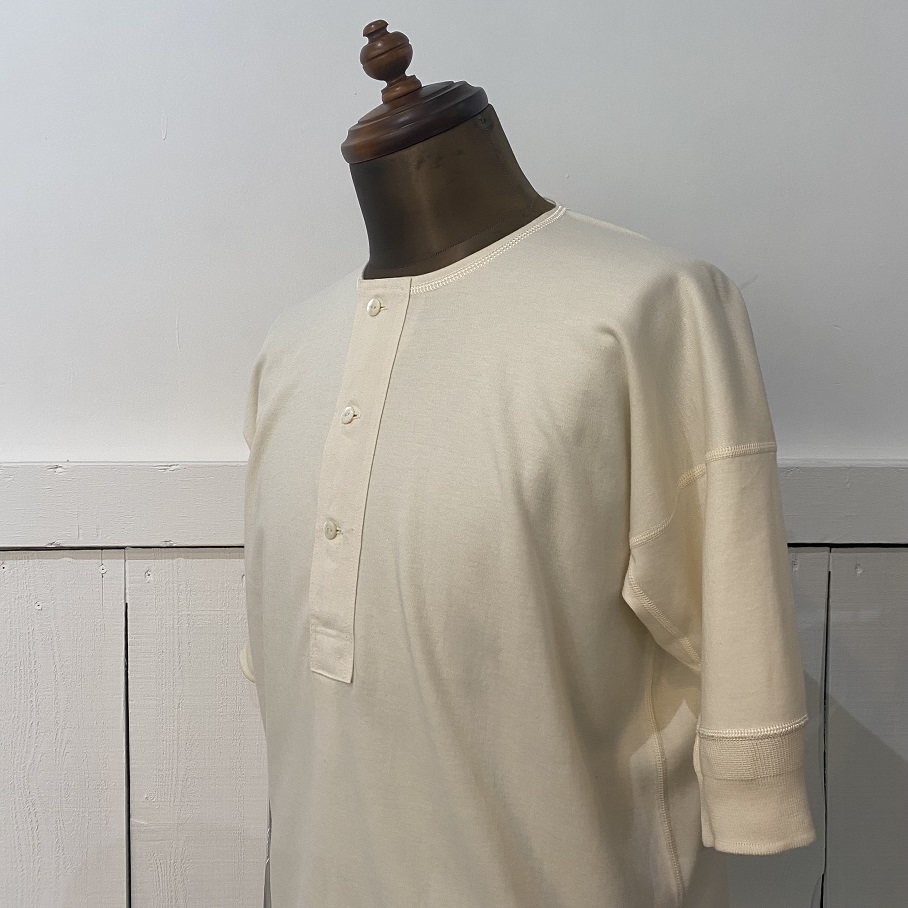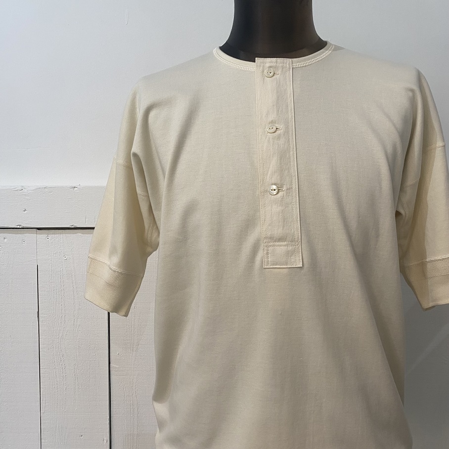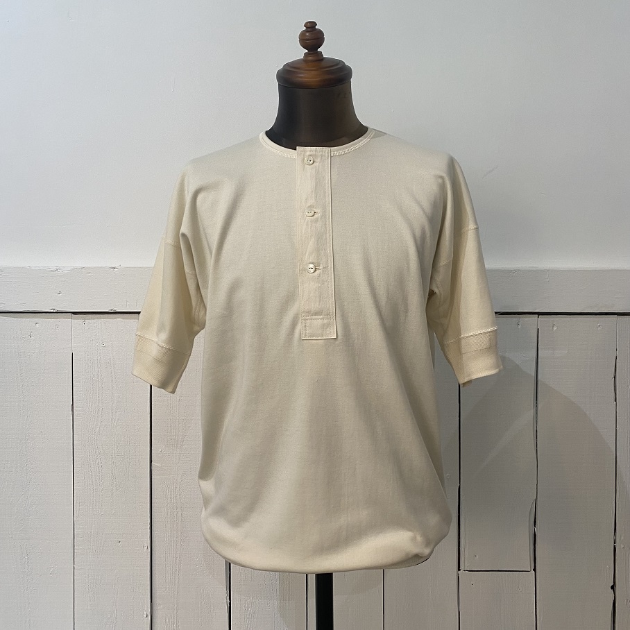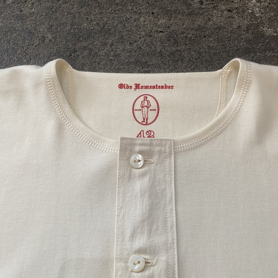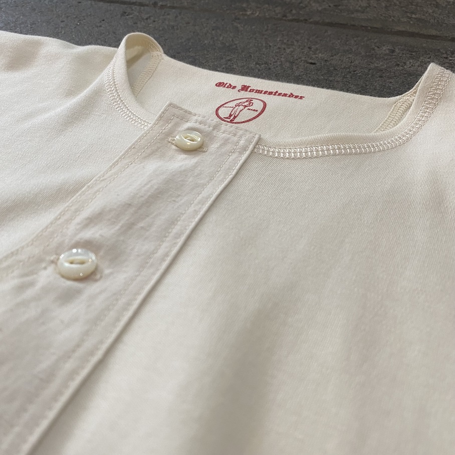 本日は当店では毎年定番アイテムとしてご好評をいただいておりますOLDE HOMESTEADERのショートスリーブヘンリーネックの中でも最も人気のIVORYが今年も入荷致しましたので早速ですがご紹介させていただきます。