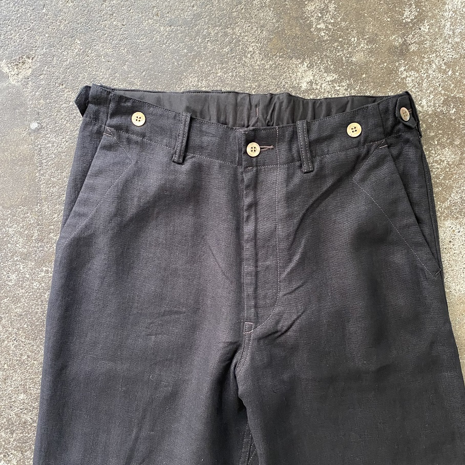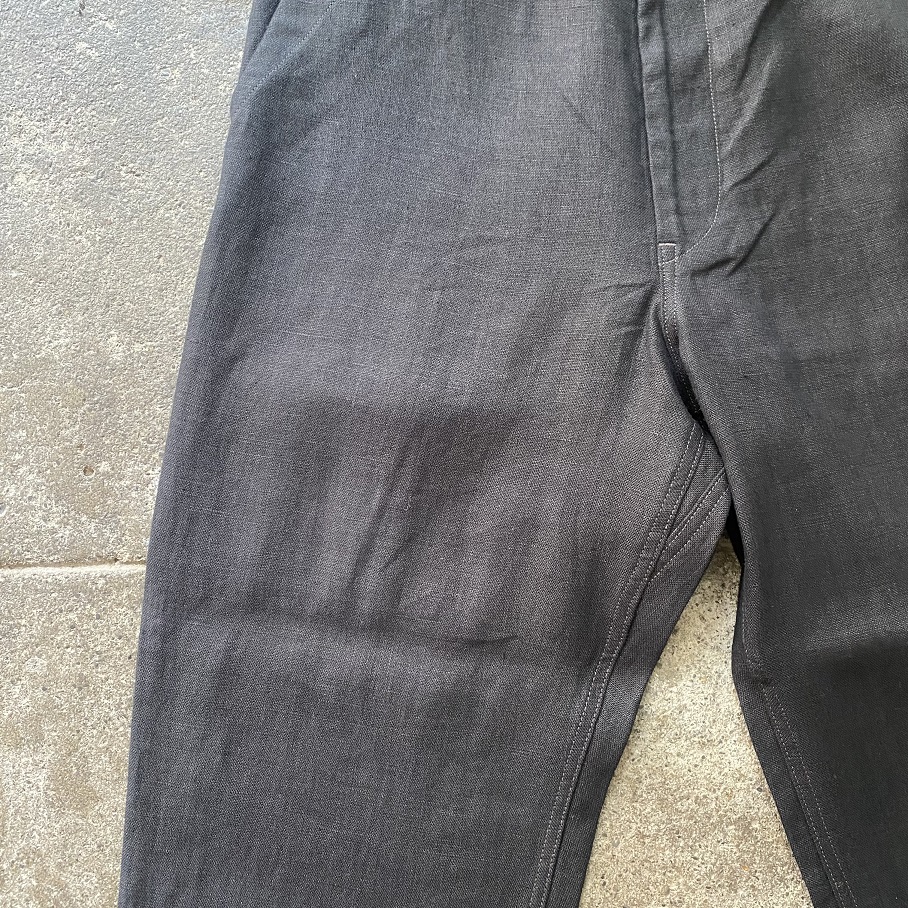 今季のYUIのアイテムの中でも当店が一押しとしておすすめさせていただきますHEAVY LINEN CANVAS素材を使用したYUI-TILITY TROUSERSとなります。