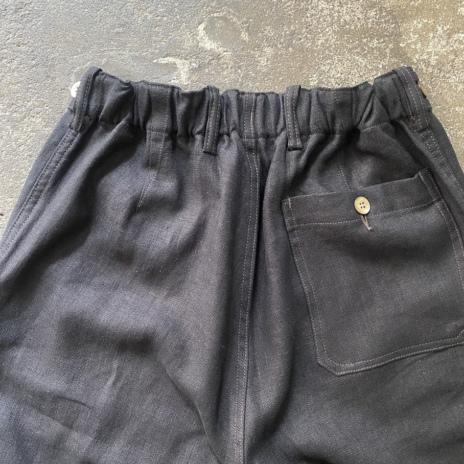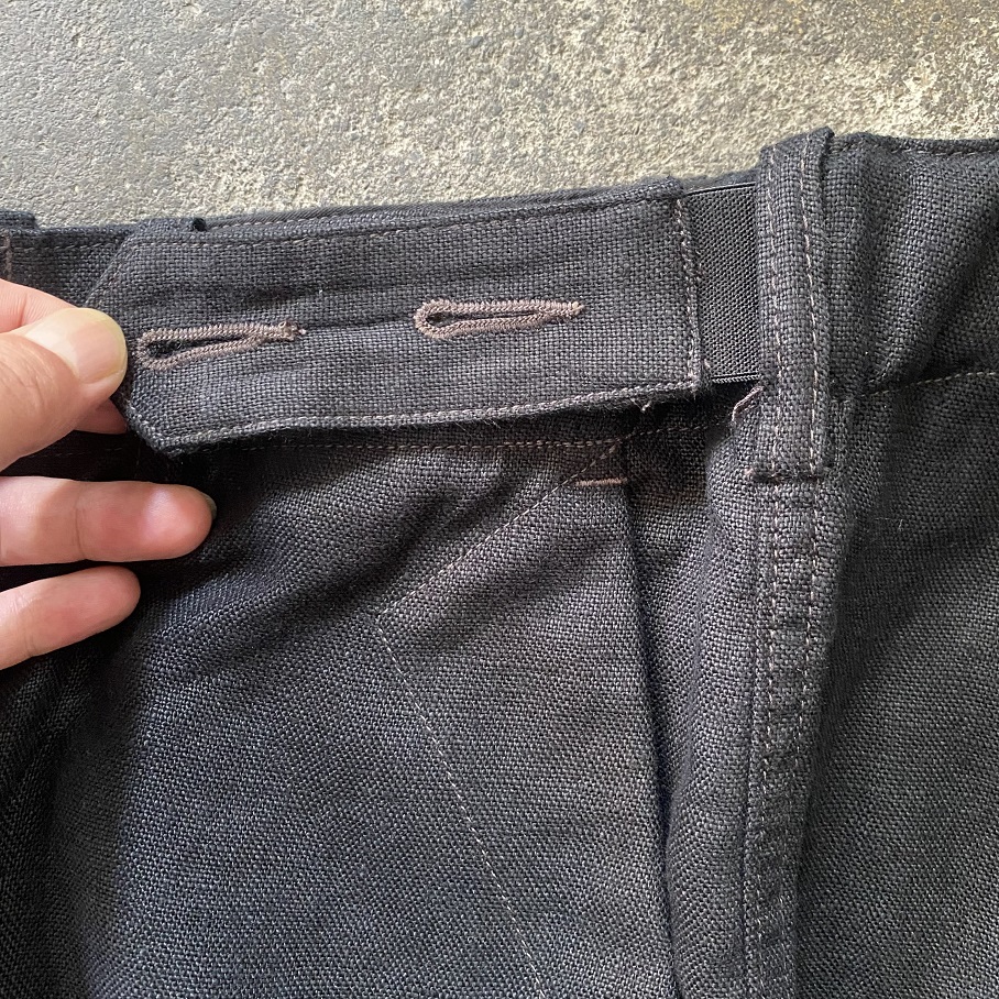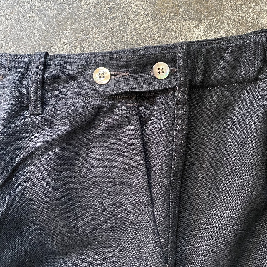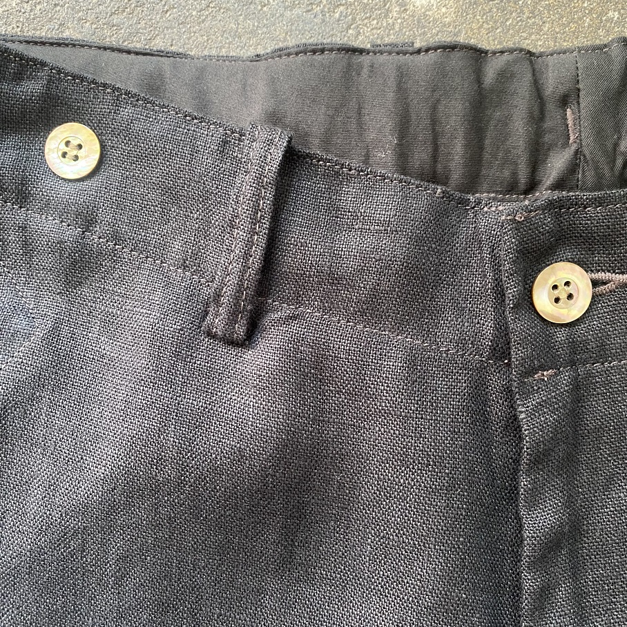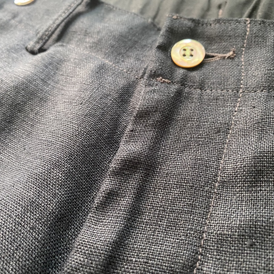 又、麻のような動きやすく柔らかい素材はサイドの縫製を巻き縫いで仕上げるのは難しく、こちらは折り伏せ縫いをした上にWステッチで環縫いを施すという通常の巻き縫いよりも手間のかかる方法で仕立てられております。