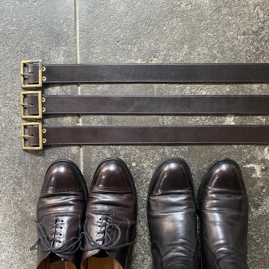 自身が以前、アメリカ買い付け時に購入いたしました真鍮製のシンプルなギャリソンバックルを使用したベルトを当店のオリジナルプロダクトとして製作いたしました。