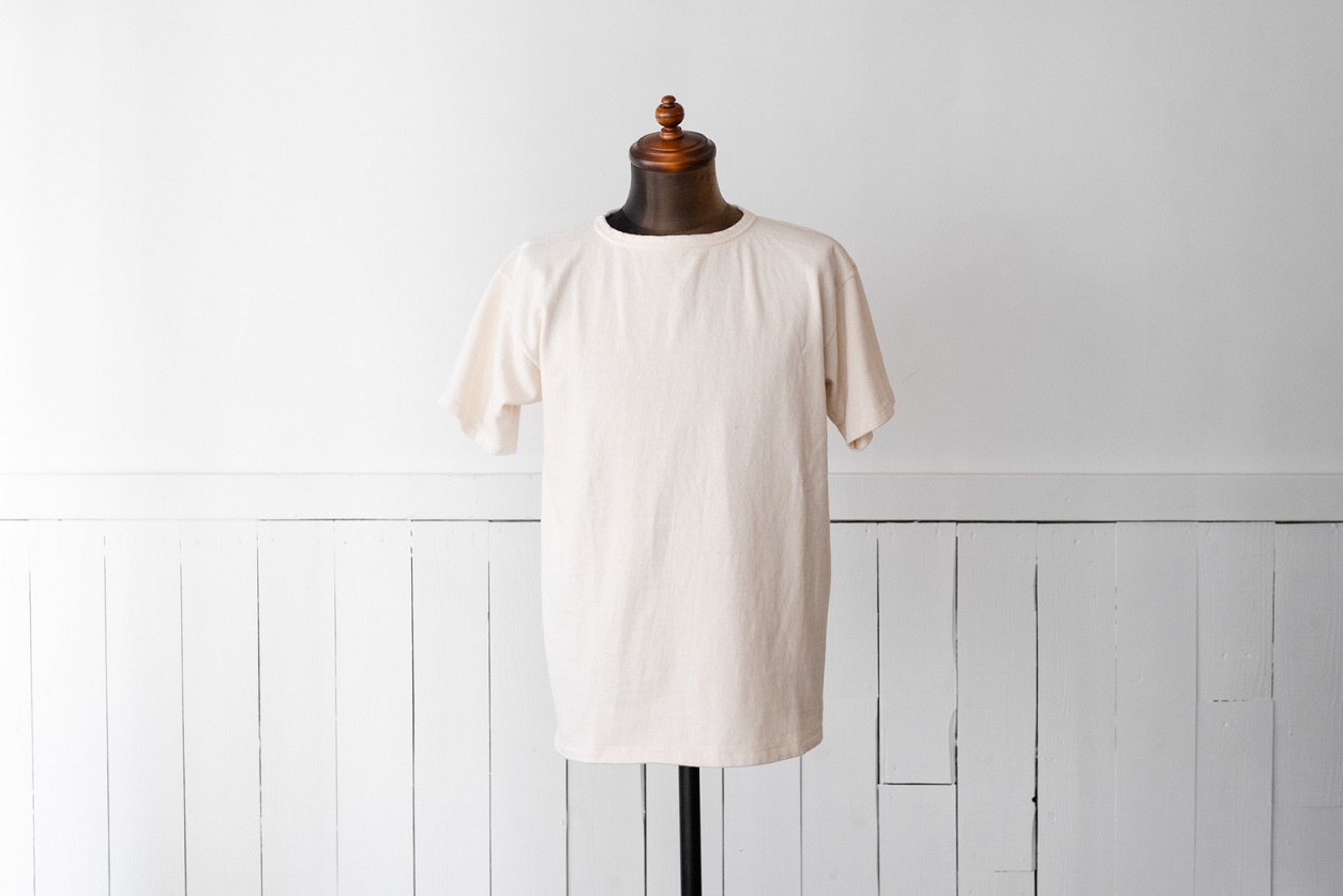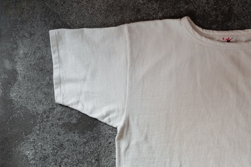 こちらのモデル専用で編立られた古い吊り編み機を使用した丸胴生地を使用したクルーネックTeeとなります。