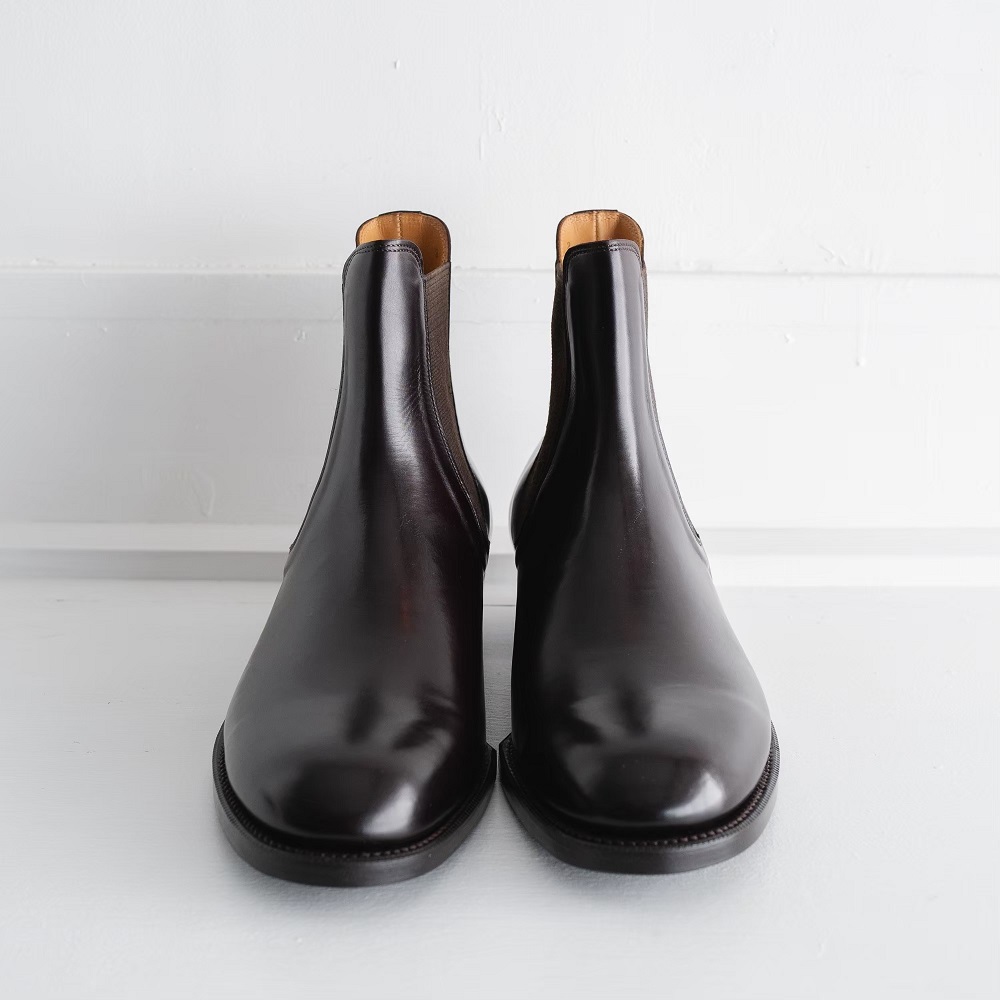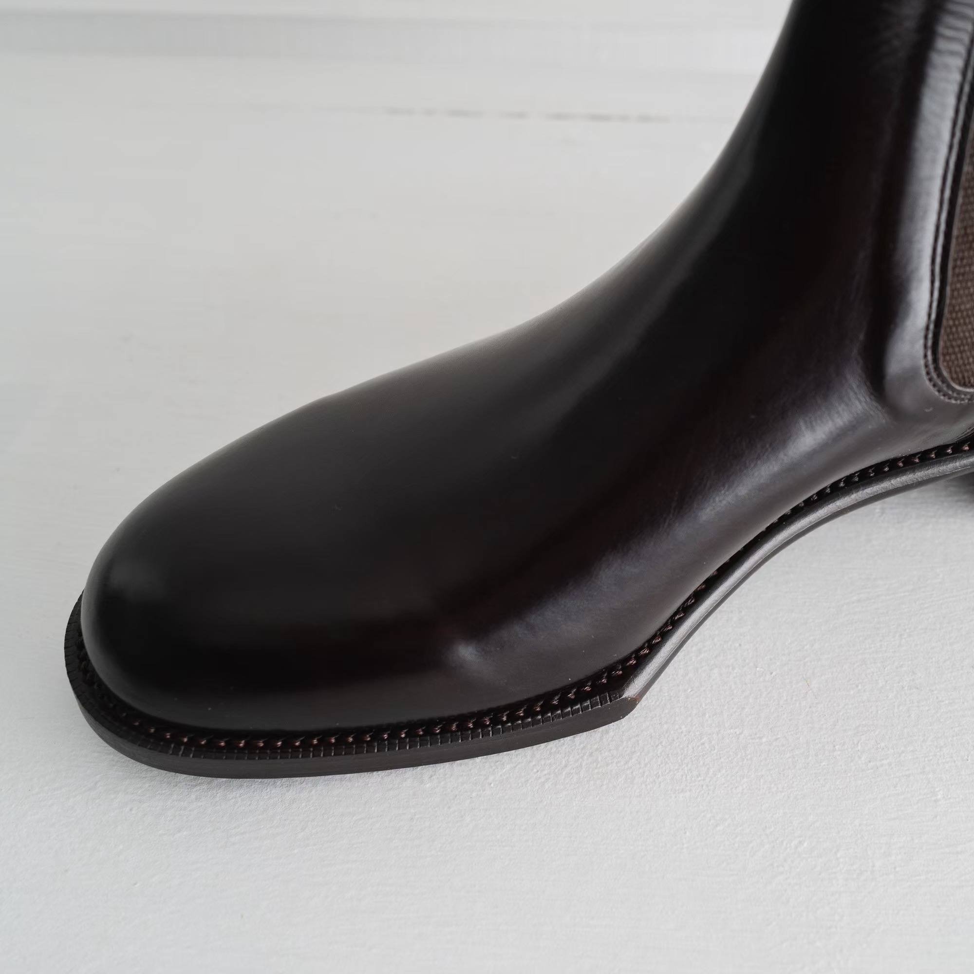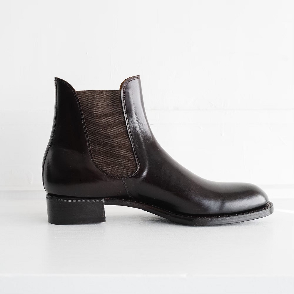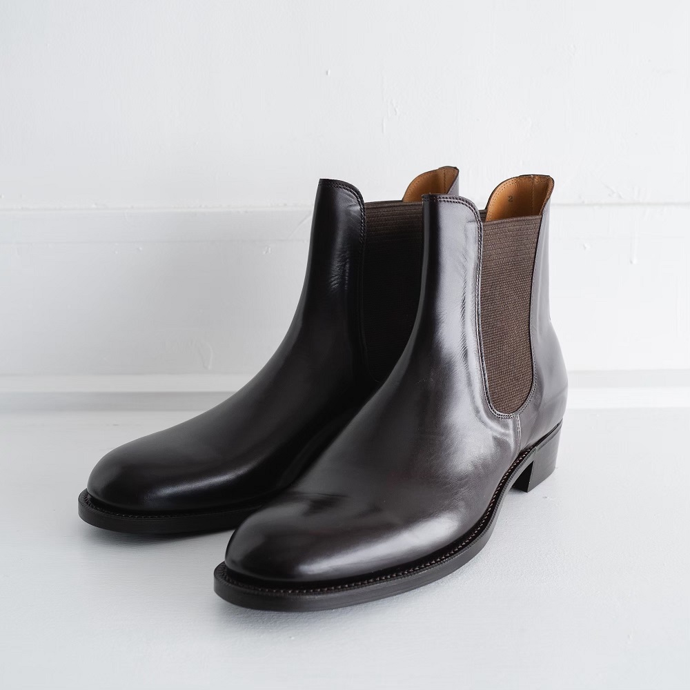 歴史のあるチェルシーブーツを参考に当店らしく表面のレザーには国産のカーフレザーを使用し前作である”Liberty”同様、ベースとなるダークブラウンの革を独自の工程を経てビートルブラウンに仕上げています。