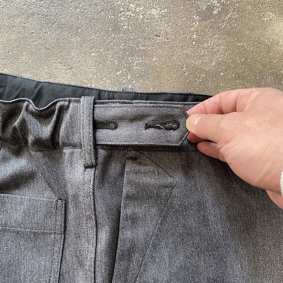 性別、年齢問わず多くの方に愛用して頂けるように ウエストにはボタン留めができるゴムベルトが内蔵されており、 サイズの調節ができるようにデザインされております。