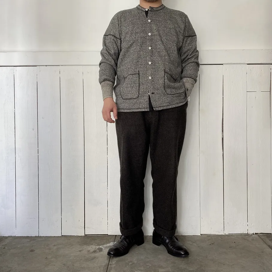 OLDE HOMESTEADERにてリリースされている”RUSTIC JERSEY”の程よい厚みのオープンフロントタイプカーディガンをご紹介させていただきます。