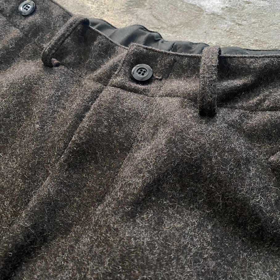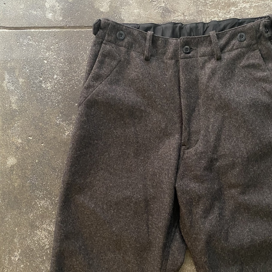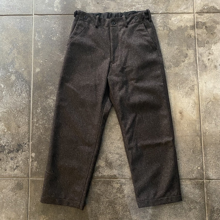 本日は毎シーズンご好評をいただいておりますYUIのYUI-TILITY TROUSERSウールメルトンバージョンが今年も少量ですが入荷しましたのでご紹介させていただきます。