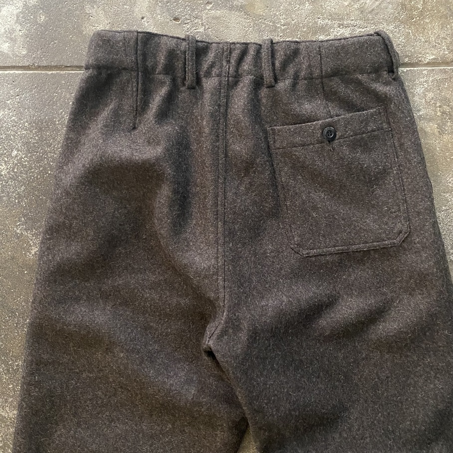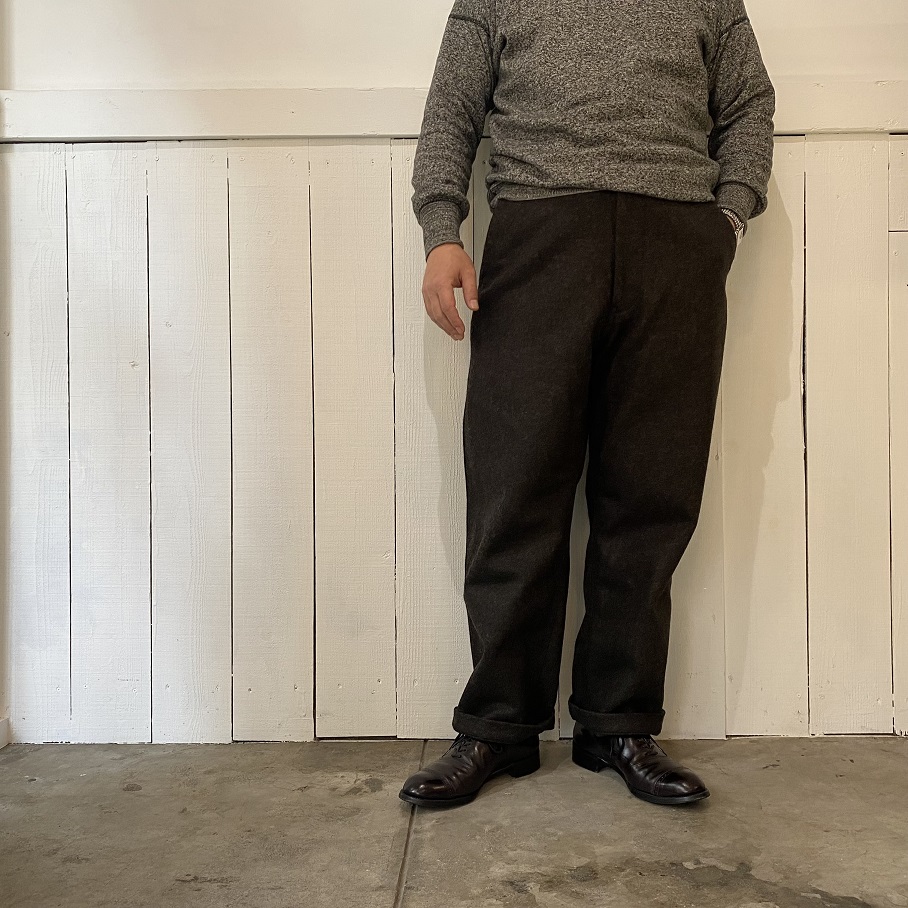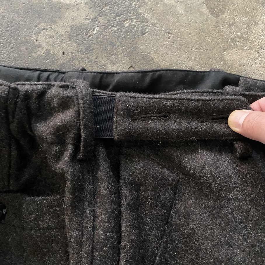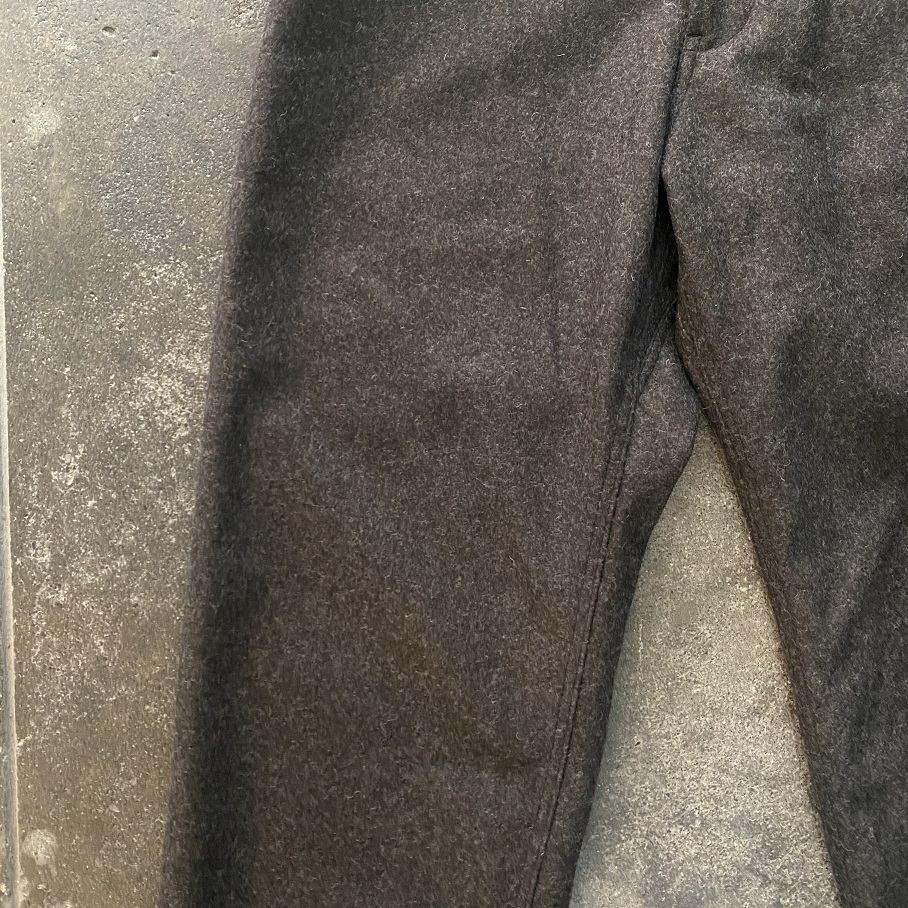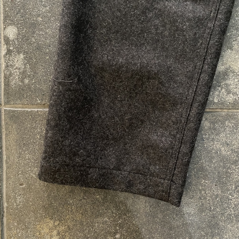 現代のウールパンツではなかなか見ることのない巻き縫いのウールパンツです。