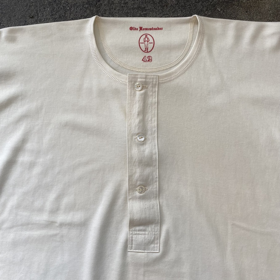 ”OLDE HOMESTEADER”よりトップスの要であるインターロックヘンリーネックのロングスリーブ”IVORY”がサイズを揃えて入荷いたしました。