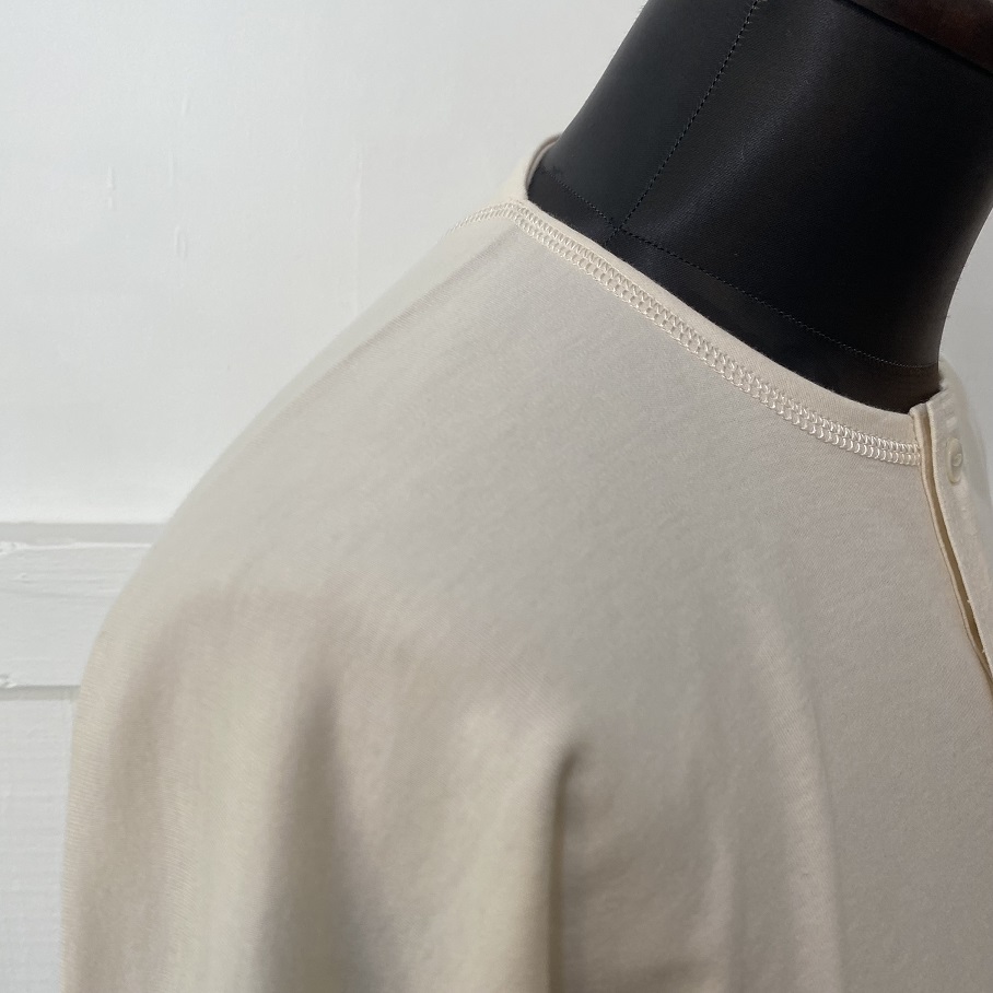 又、このヘンリーネックの特徴として肩部分には縫製が無く、ボディーサイドで組み立てることで肩部分の縫製による擦れやストレスが無い事も特徴と言えます。