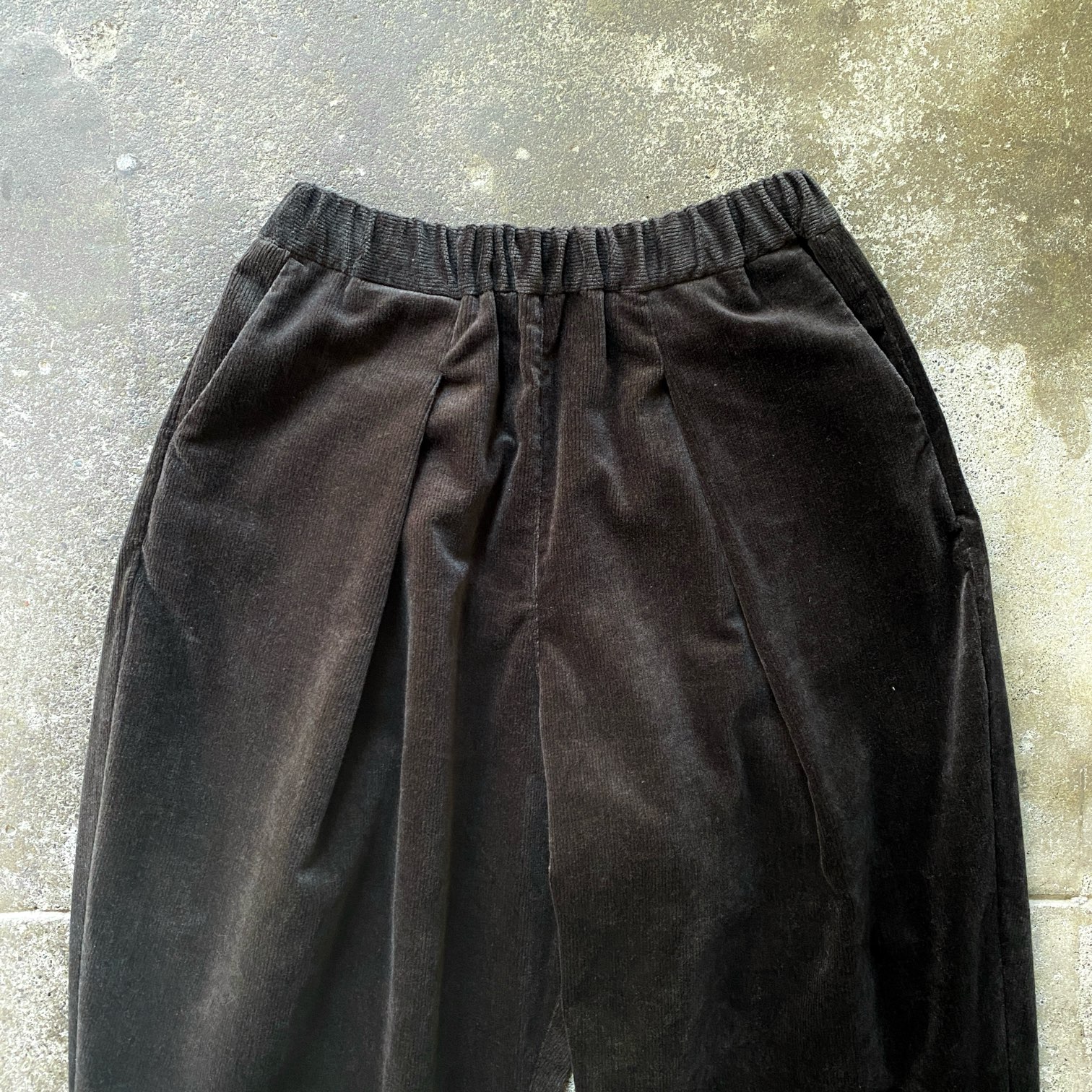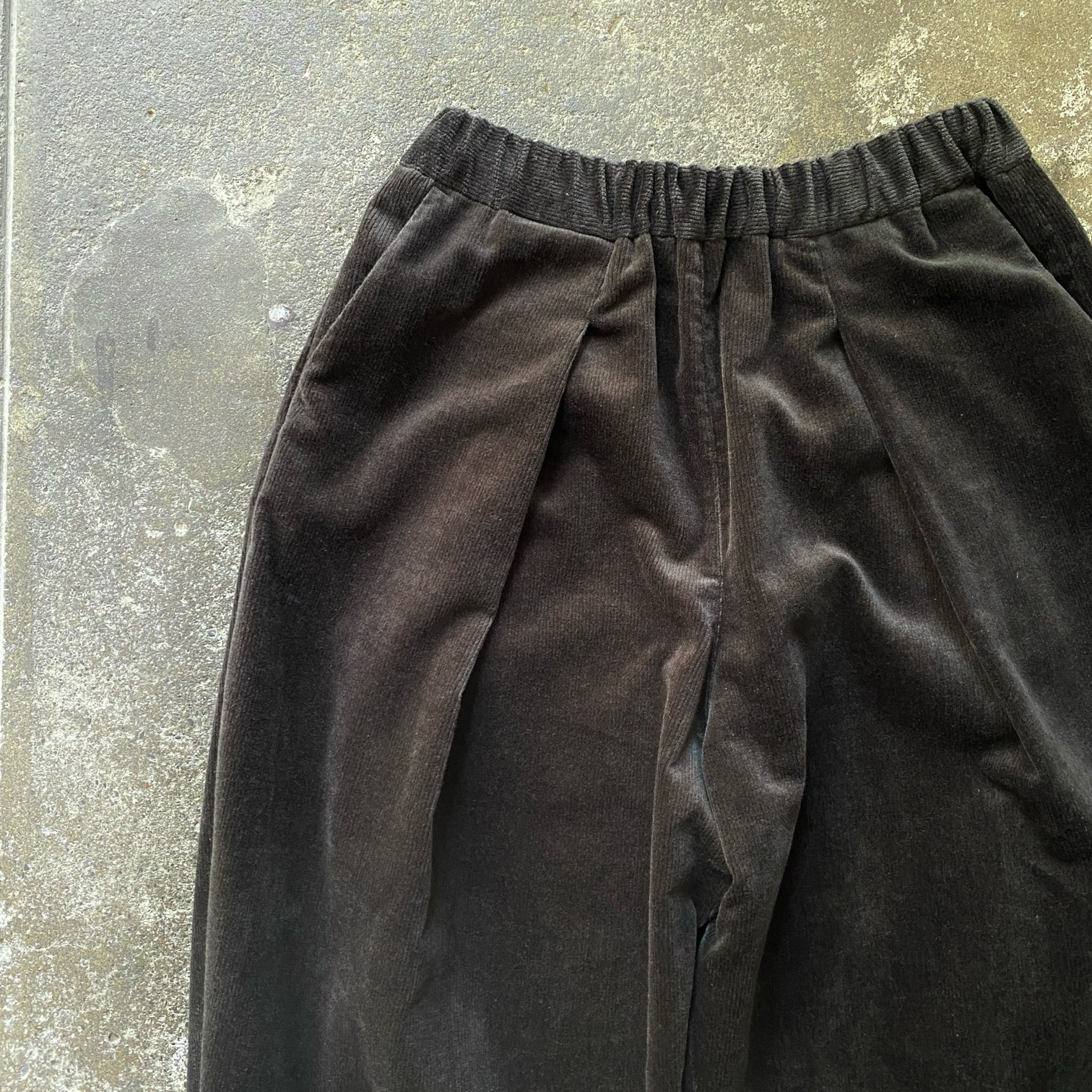 NEW ARRIVALYUI “WIDE TUCK EASY TROUSERS” RIBLESS CORDUROY FADED BLACK YWTEP-008