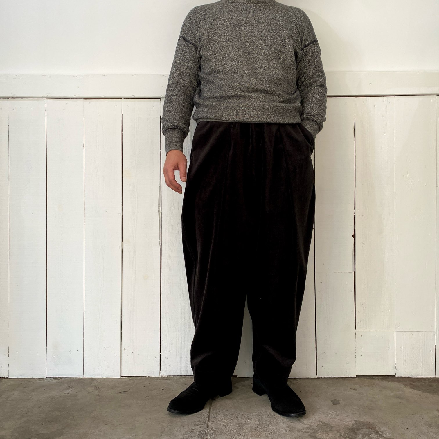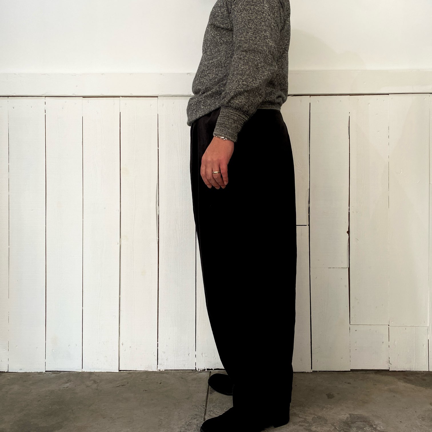 こちらは“Le fermier Jacket”でも使用させていただきました今季YUIさんが特注で製作したRIBLESS CORDUROY FADED BLACKを使用した“WIDE TUCK EASY TROUSERS”となります。