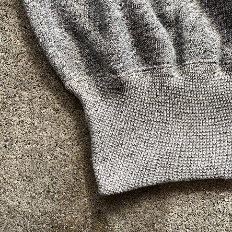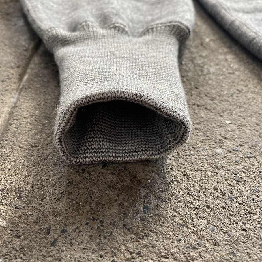 袖リブ、裾リブも着初めはややタイトに感じるフィット感ですが着込み、洗濯を繰り返した”後”を計算してのしっかりと身体に沿うディティールです。