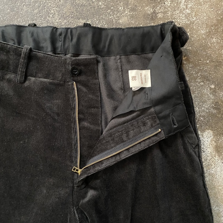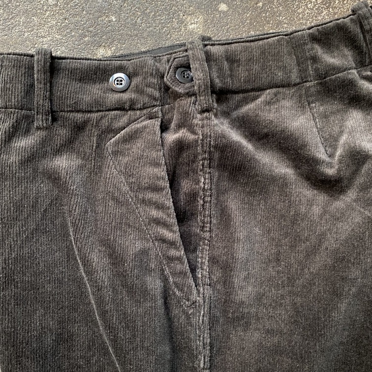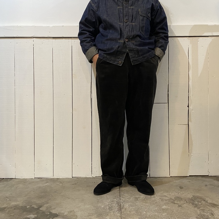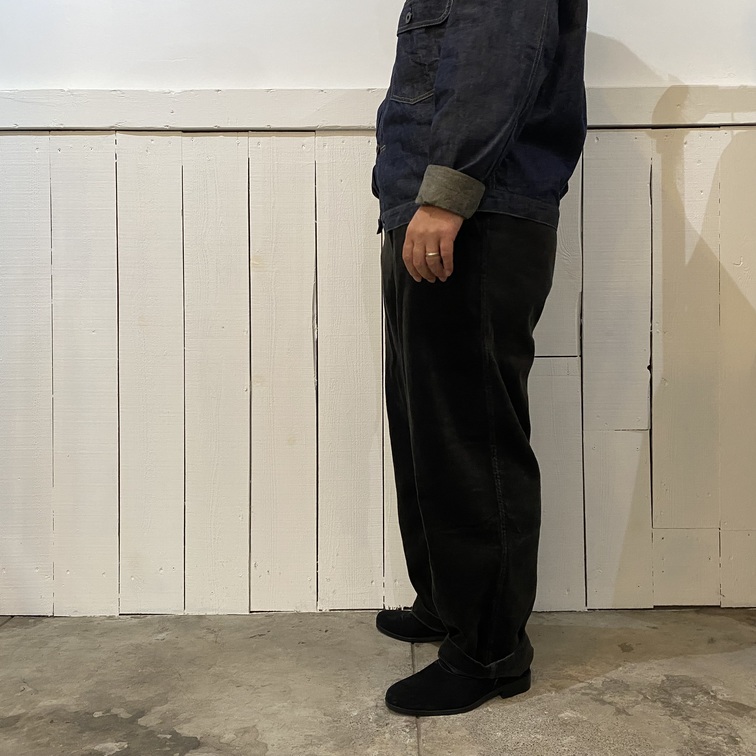 まるで長年穿きこんだビンテージ感のあるスモーキーなブラックででカジュアル感ときっちり感が共存する”大人の為のコーデュロイパンツ”といった印象の一本となりますので、気になった方はぜひこの機会をお見逃しなく。