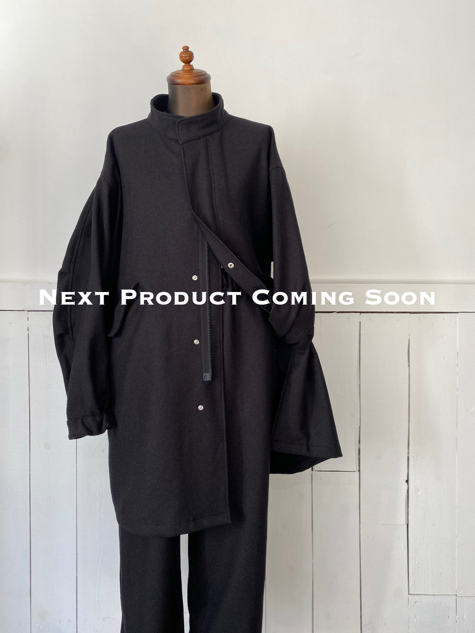 究極にディティールを削ぎ落し、素材には肌触りの良いウール×シルク生地を使用したモッズコート・イージーパンツをPowderhorn Mountaineeringに別注しておりました。満を持していよいよリリースさせていただきます。