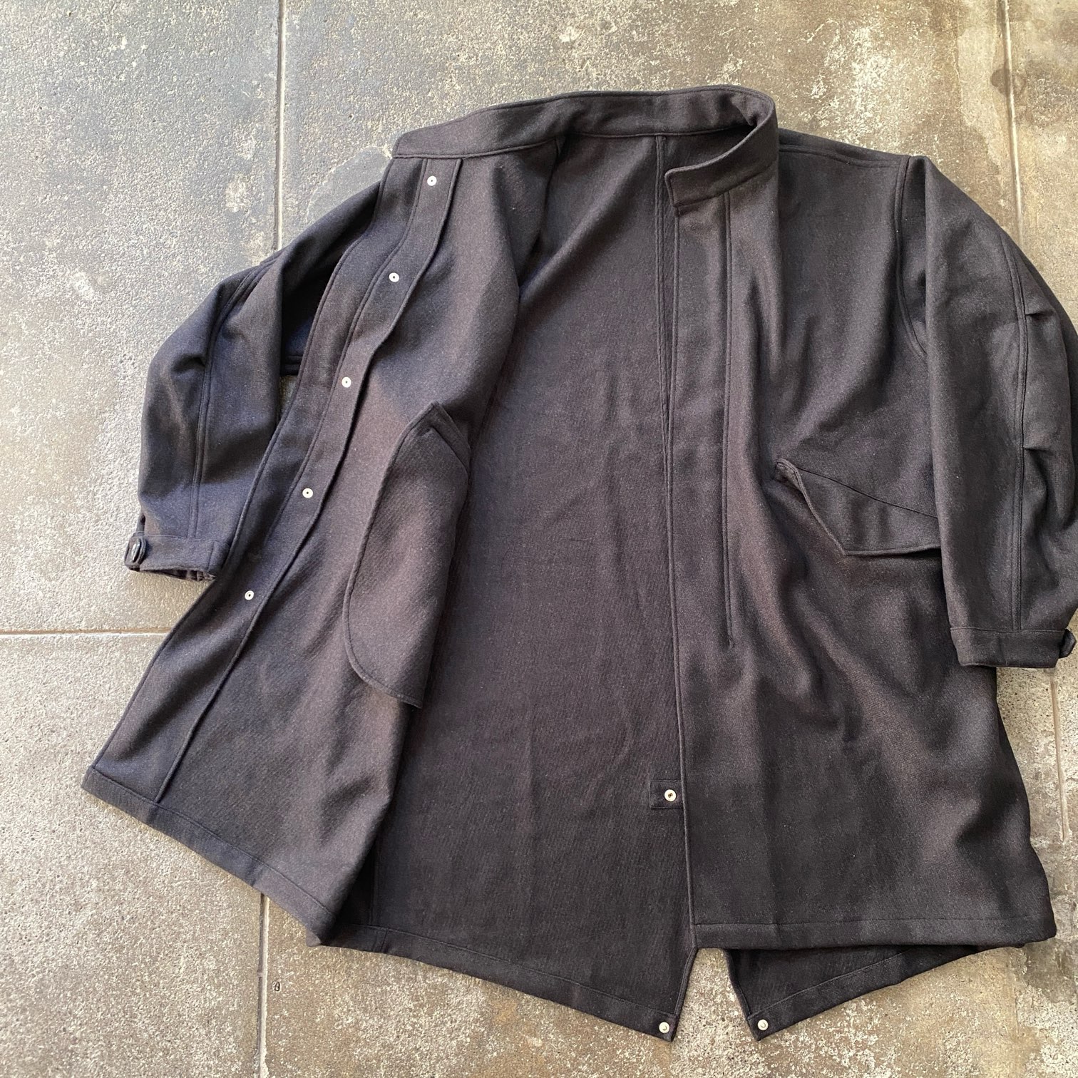 元々、インラインモデルでもご好評をいただいているモデルですが、今回はインラインでは展開していない”質の高いウール生地でモッズコートを着たい”という私の我儘にメーカー様にご協力を頂き、当店の別注アイテムとして商品化が実現いたしました。