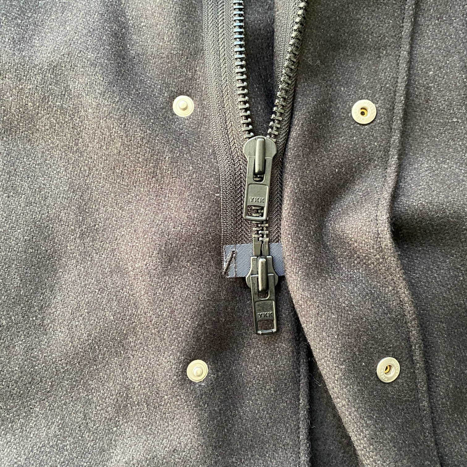 ただディティールを削ぎ落すだけでなく、アップデートしている部分もご紹介させていただきますと、フロントジッパーは上下どちらからでも上げ下げが可能な2WAYジッパーを採用しております。