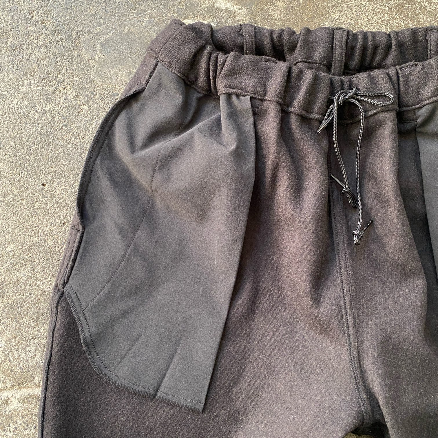 本日は昨日ご紹介させていただきましたスペシャルな生地を使用したMODS COATと共生地となるPowderhorn Mountaineeringの名作、“P.H. M.EASY PANTS”もウール×シルク素材にて製作していただきましたのでご紹介させていただきます。