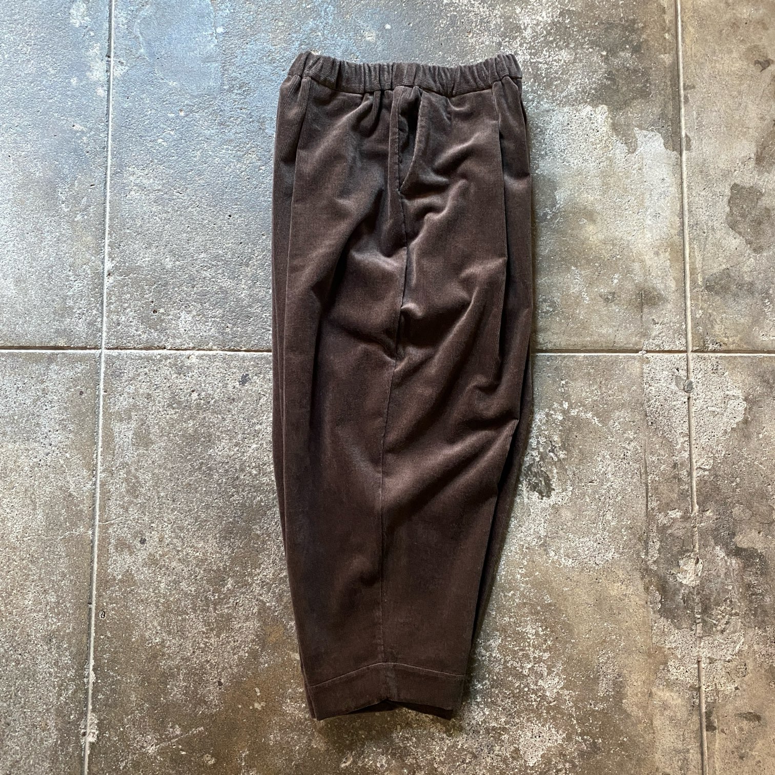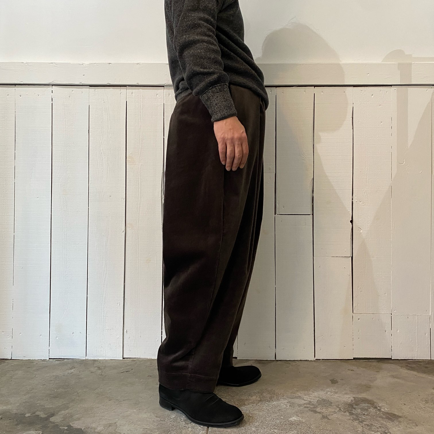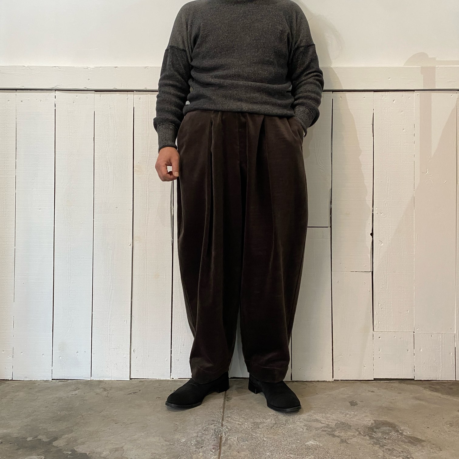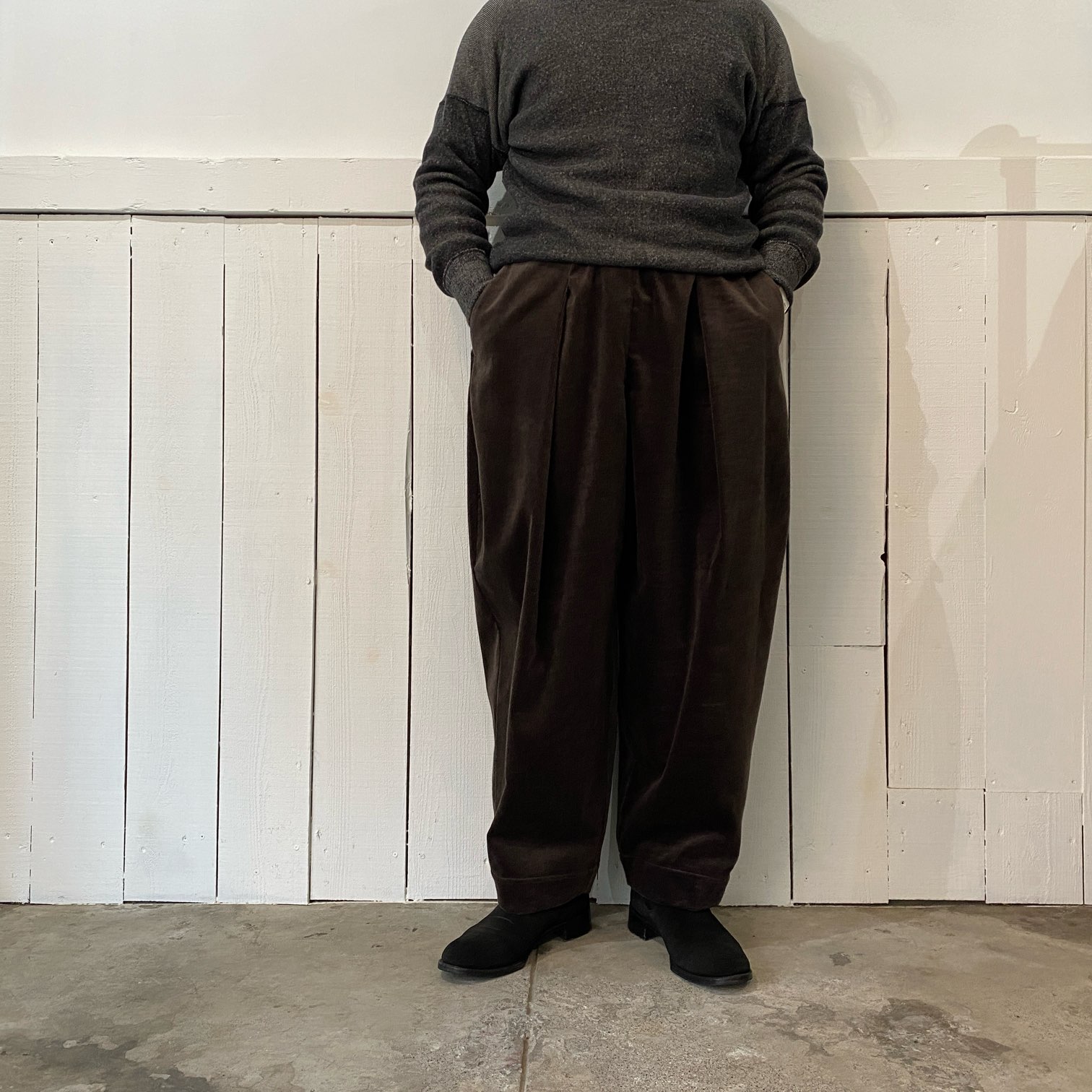 こちらは今季YUIさんが特注で製作したRIBLESS CORDUROY を使用した“WIDE TUCK EASY TROUSERS”となります。
