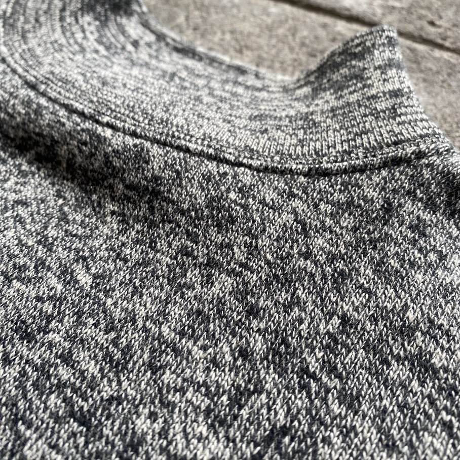 RUSTIC JERSEYシリーズの中でもヘビーオンスの厚手の生地を使用した物でスーピマコットンを使用した撚り杢生地のコットンセーターとなります。