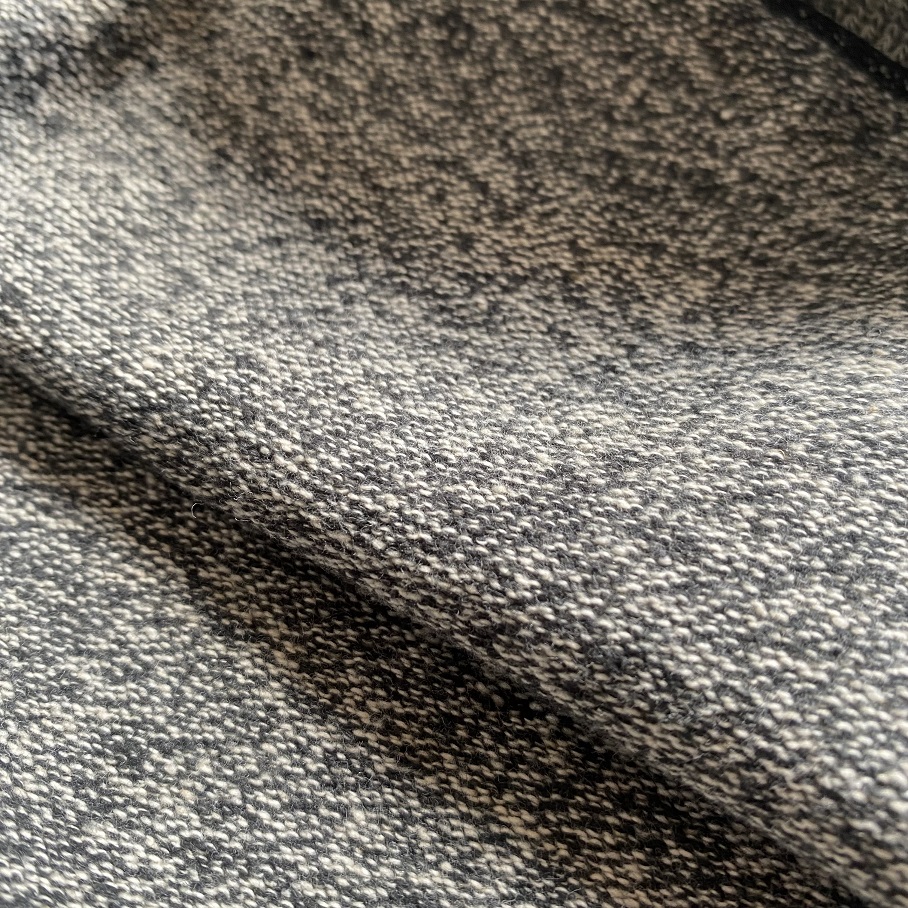 BLACK×ECRUの糸で編立られた撚り杢生地。規則的ではない二色の糸が織りなすカラーを楽しんでいただきたい・・・そんな一枚です。
