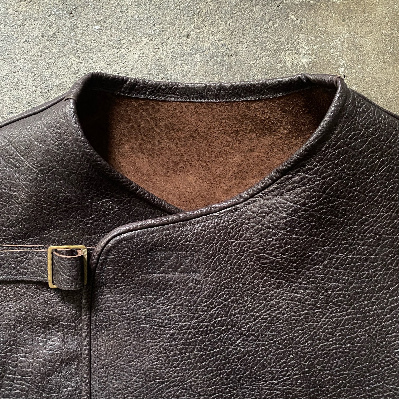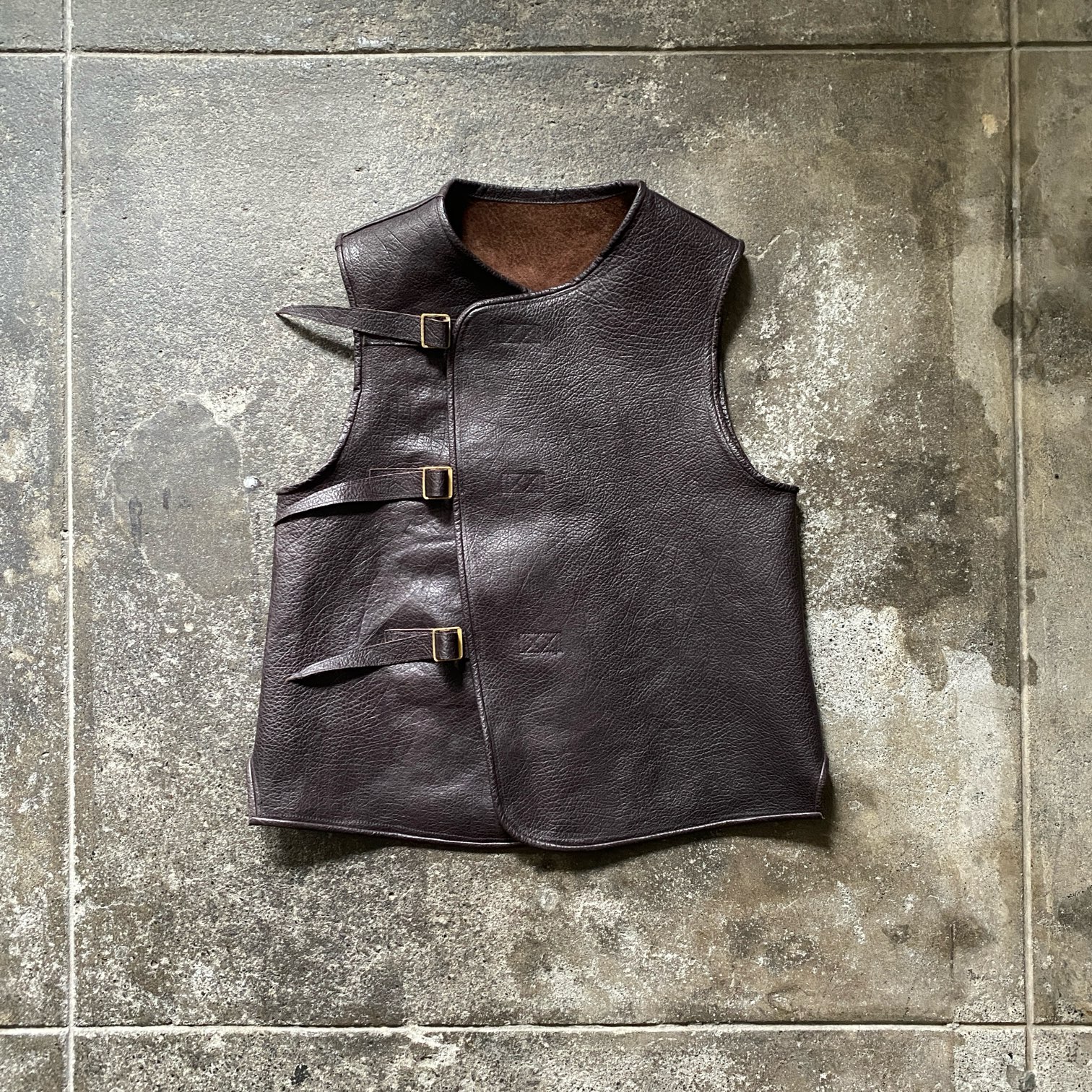 先日までの受注でも大変ご好評を頂きました”WW1 UK ARMY STYLE AT LEATHER VEST”を以前、当店のオリジナルカーコート、“Manhattan Coat”でも使用したオリジナルにて製作したホースハイドレザーを用いて製作いたしました。