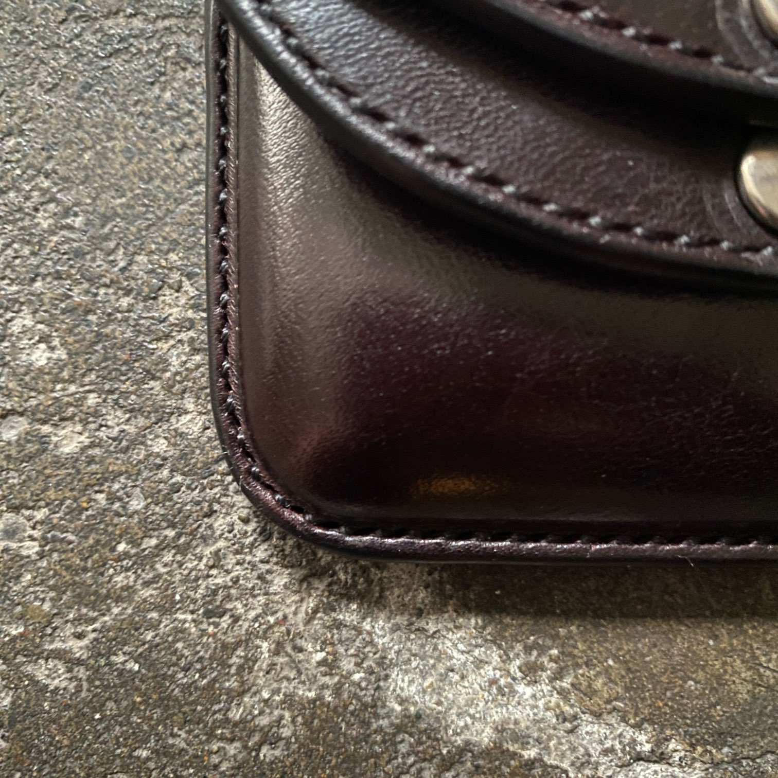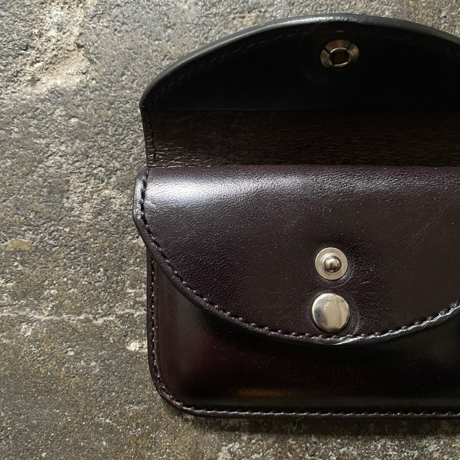 ベースとなるブラウンの革を染めて、独自の工程を経てビートルブラックに仕上げています。