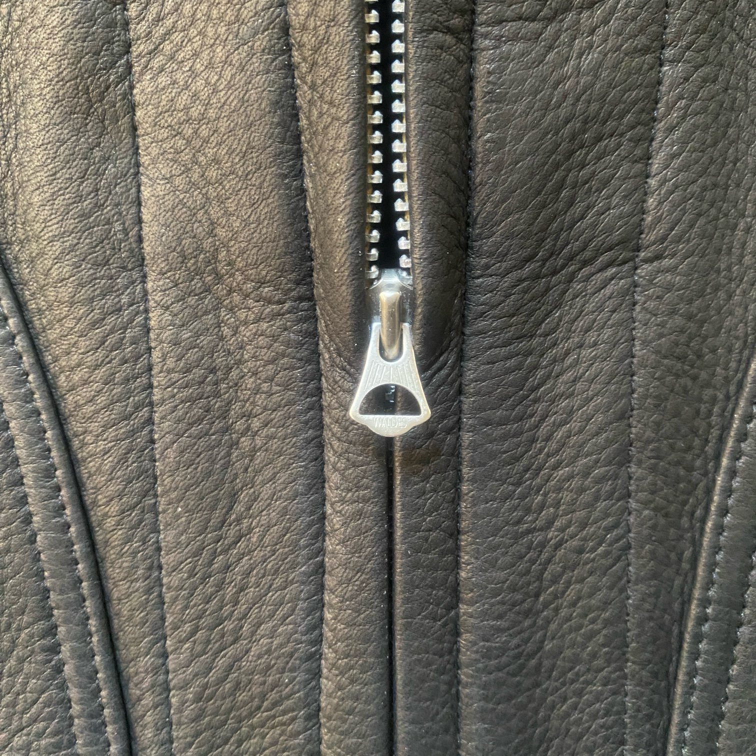 ビンテージ感を損なわないように敢えてアルミジッパーを採用しており、新品時にはジッパーが少し硬く感じますが着用を繰り返すことでエレメントの角が取れてスムーズに上下致しますのでそういった部分も楽しみながら着用いただければ幸いです。