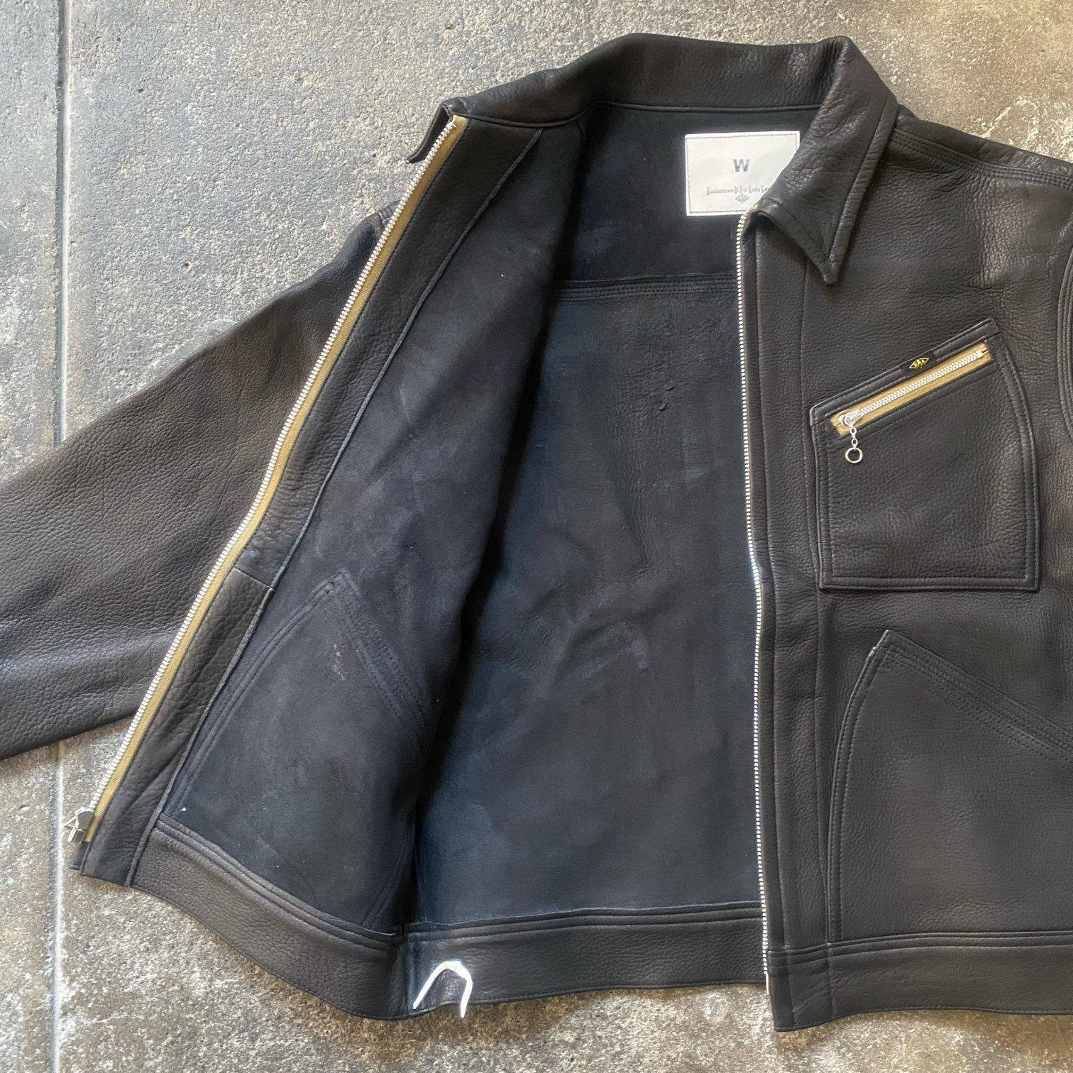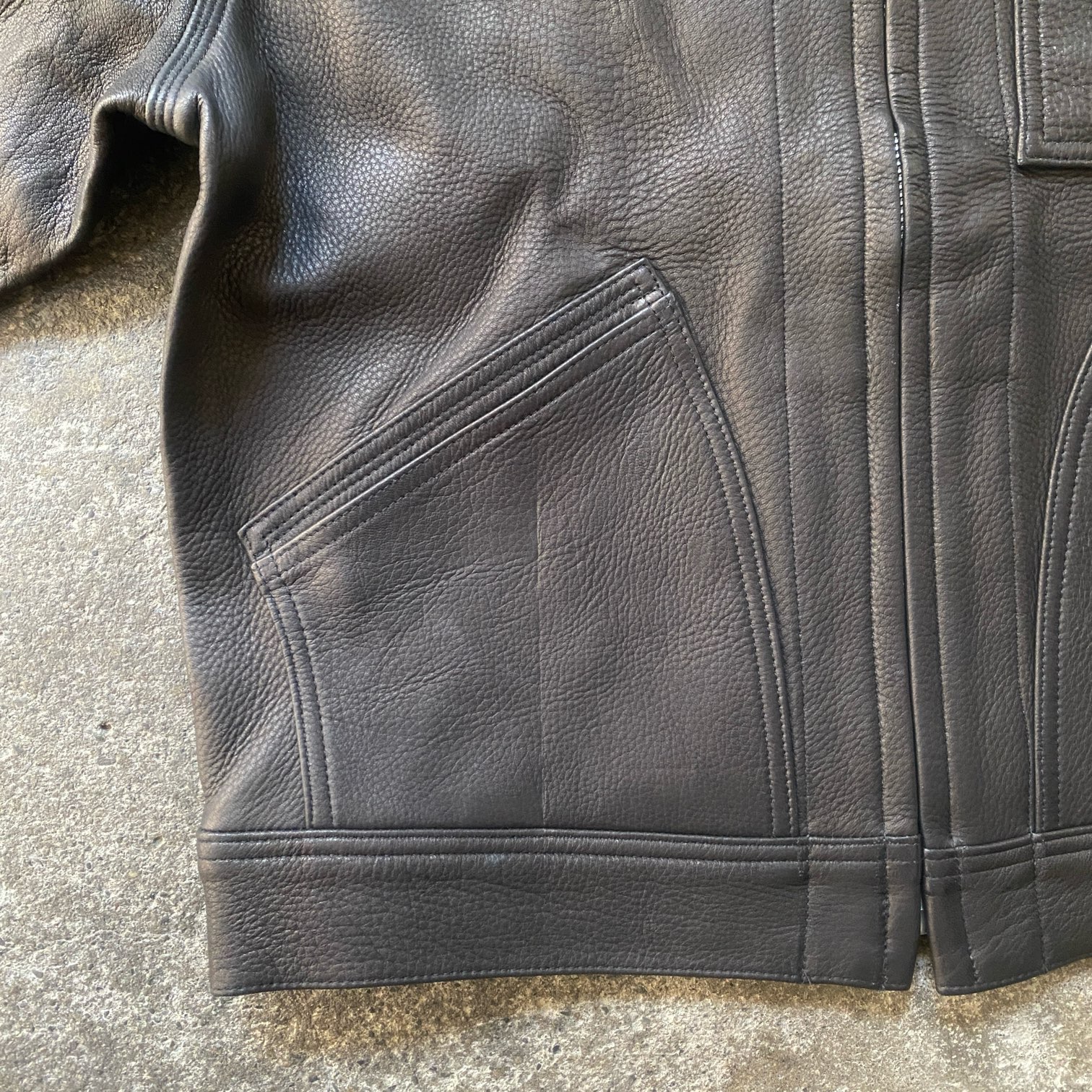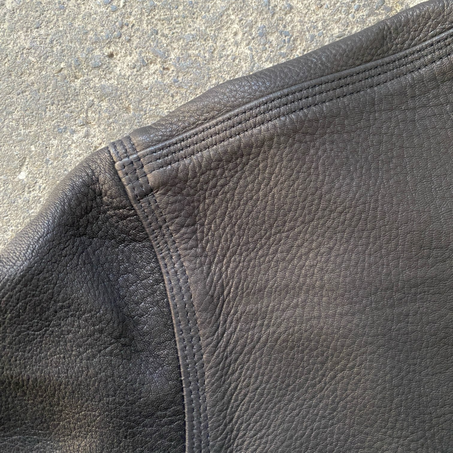 この加工のおかげで着用時には引っかかることも無くサラリと着用することが出来、又、エルクスキンジャケット特有のインナーの服にレザーの粉が付着する・・・なんてことがほとんどなくなっている点には驚きを隠せません。