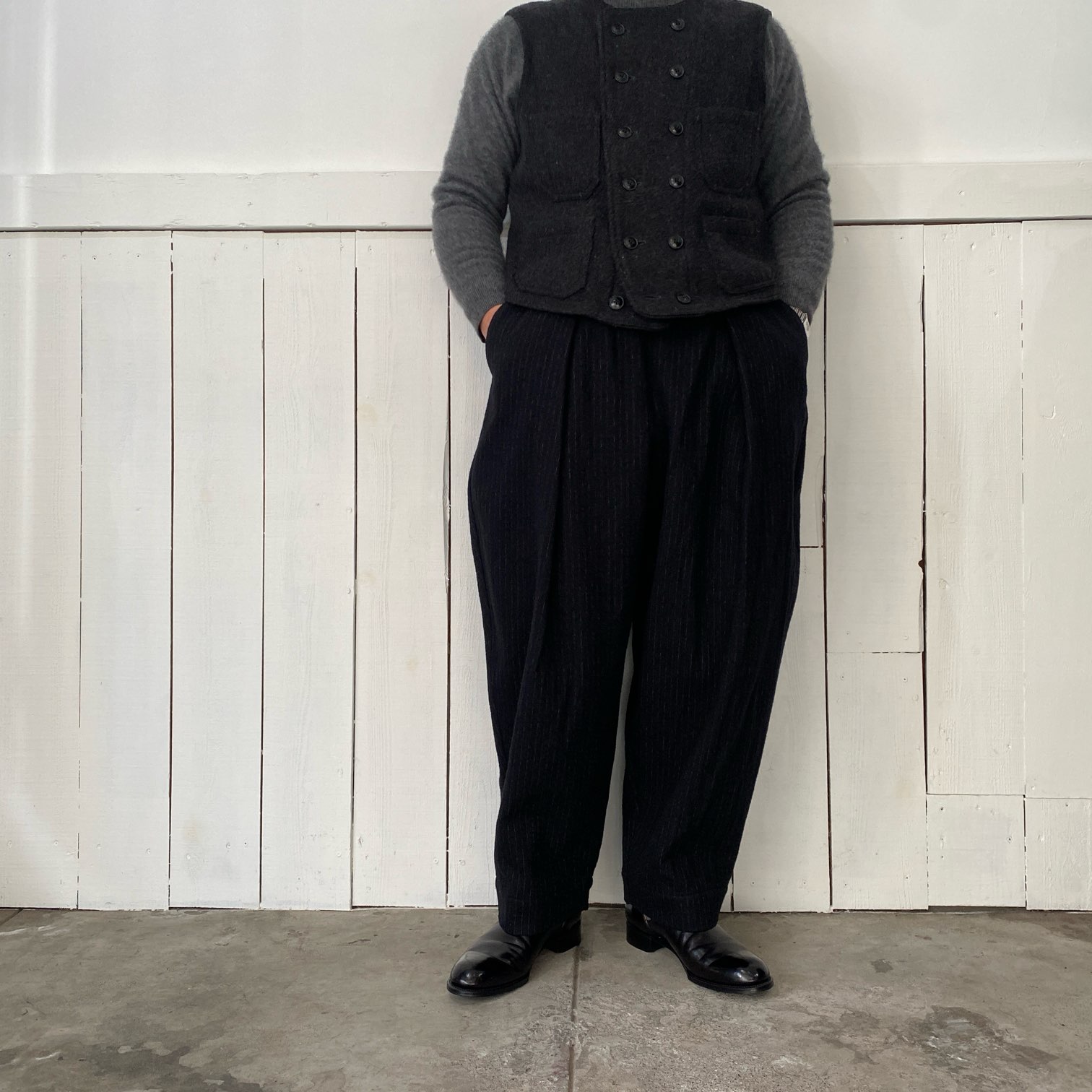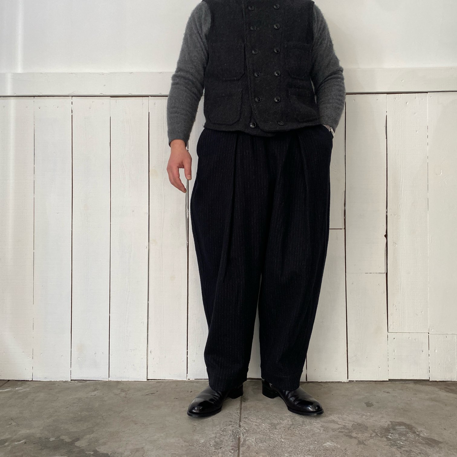本日は大変ご好評をいただいておりますYUIより入荷致しました“WIDE TUCK EASY TROUSERS”のコットン×ウール生地の物をご紹介させていただきます。