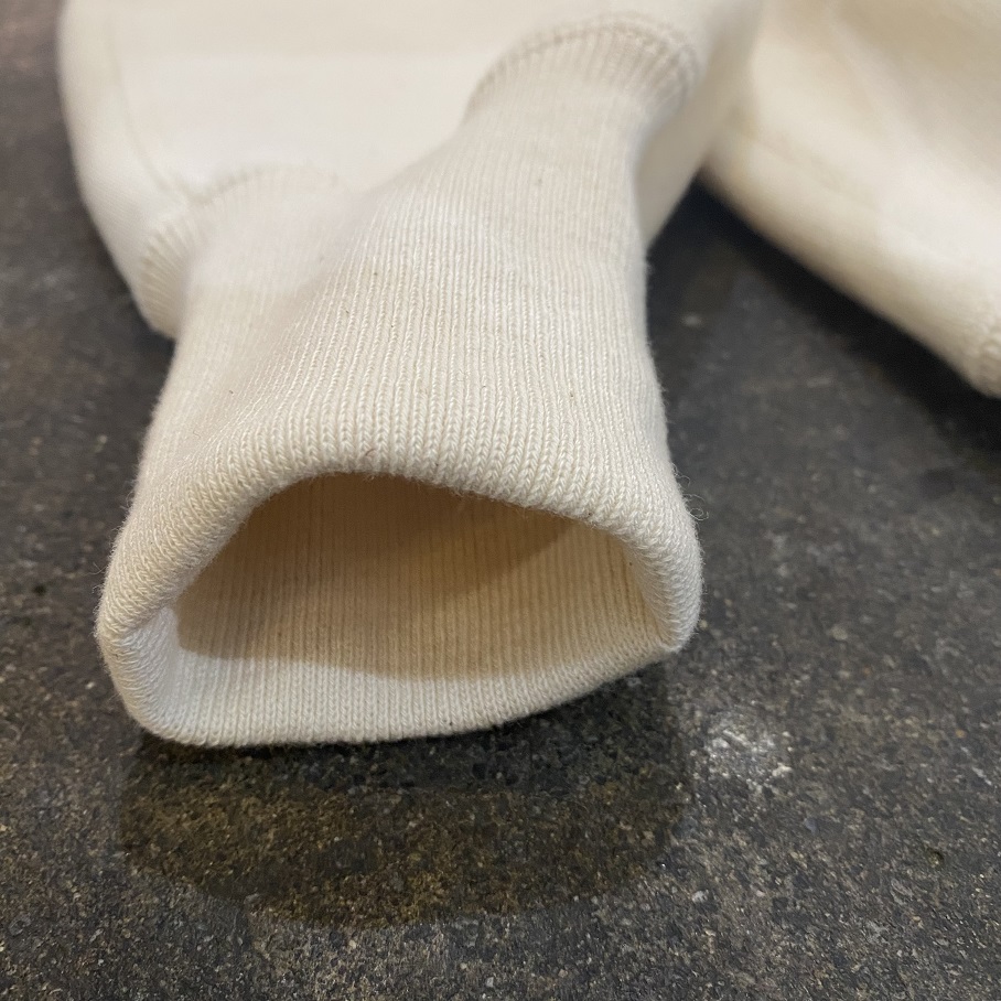 リブの付かない仕様ですがネック部分の幅を絶妙にコントロールし、着初めは少しきつく感じるかと思いますが、着込むほどにご自身の頭や首に馴染み、唯一無二の物へと変化していきます。